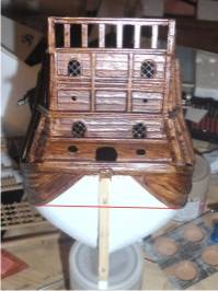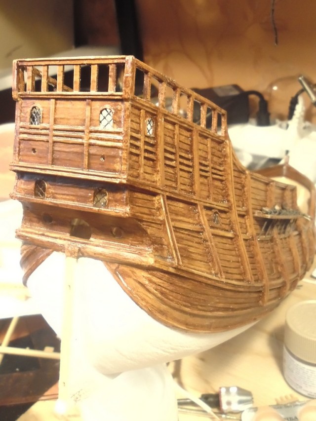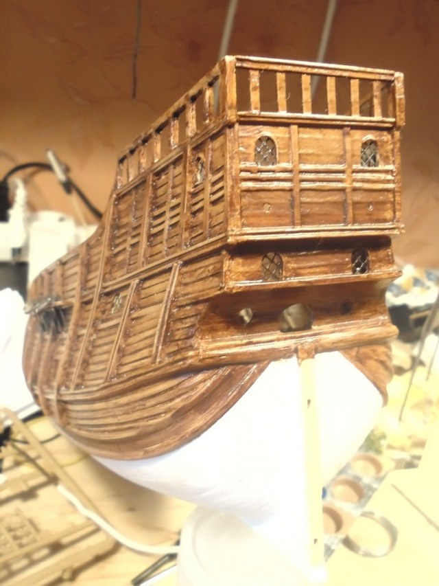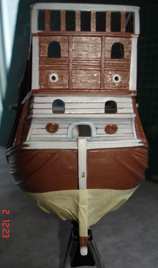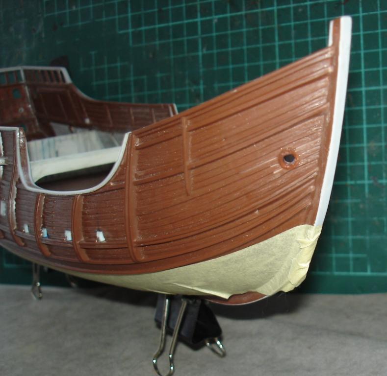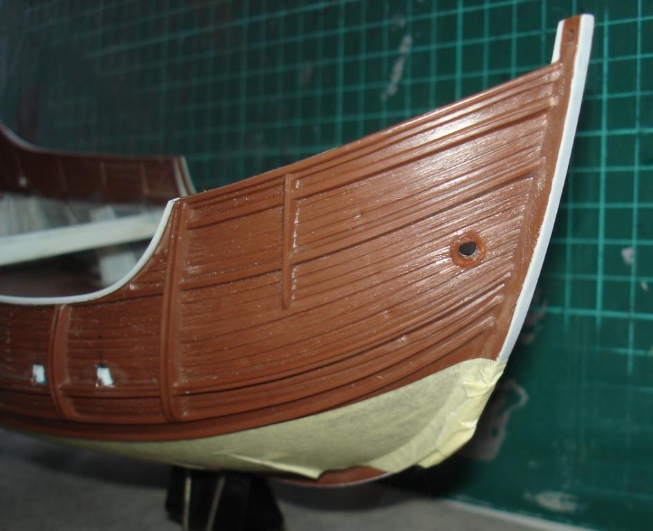 Домучал, наконец, корму. Вклеил и окрасил транцевую деталь. Готов к табуреткам!