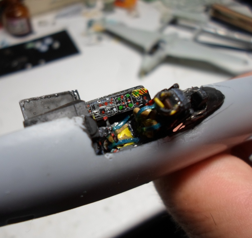 И обязательно ещё прикупи смолу от Aires (за 2-2,5К рублей) и тогда получиться идеальная модель!А с креслом и кабиной... Матвей - МаньяКЪ Ты! В этом узком пространстве, именуемом кабиной, после установки фонаря ничего видно не будет. Спрашивается, а нафига тогда делал кресло сверх детализированное и приборчики зеление?