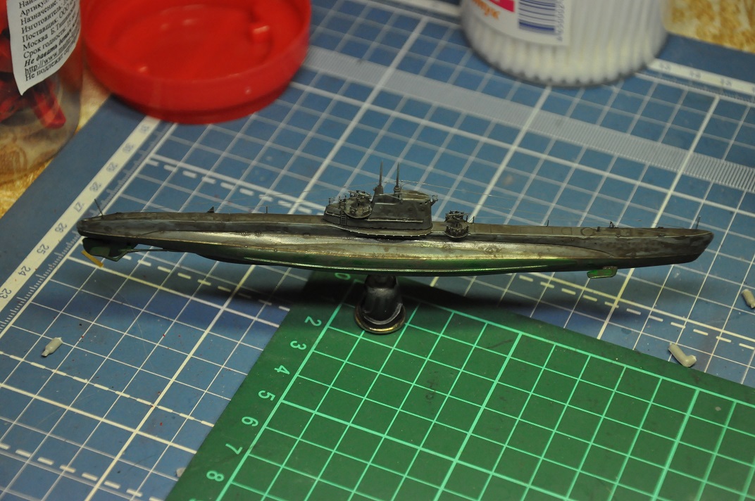 Сделаны перископы из иголок на всех трех лодках, установлены орудия (смоляные от ЗиП). До сих пор шпаклюю щели между палубой и корпусом - мелкие каверны досаждают.