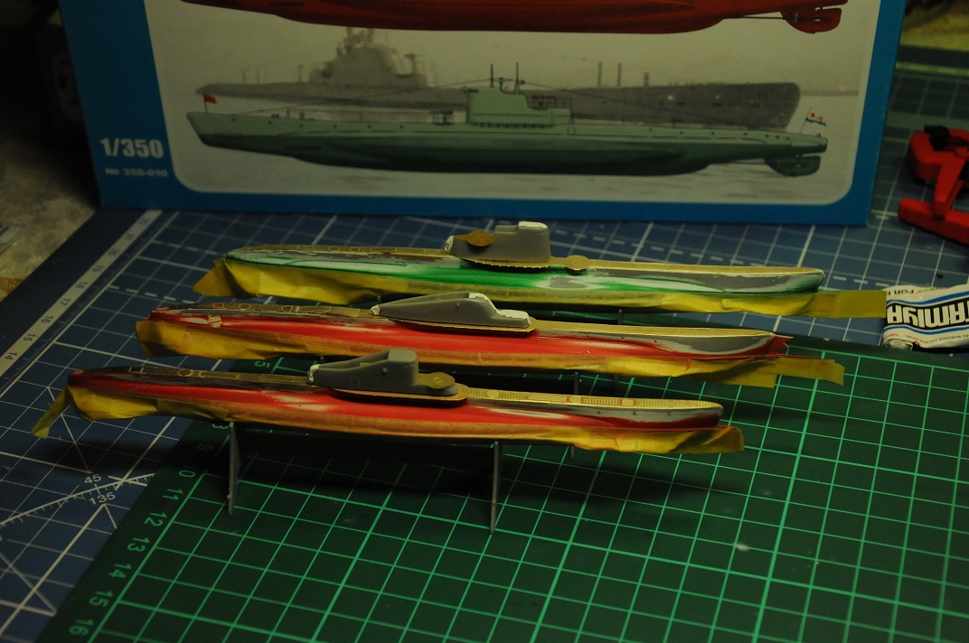 Пока лак сохнет, смотрю, что дальше можно сделать. Есть еще 2 советские лодки масштаба 1/350 времен ВОВ - типа С и переделка К в 628 проект.