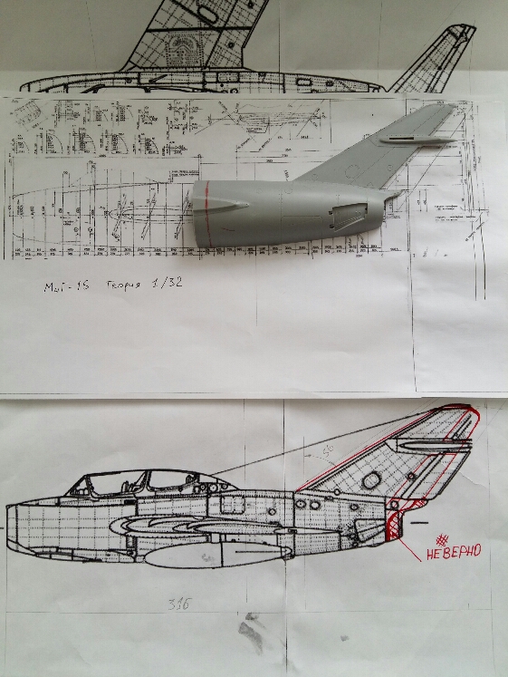 Более детальный анализ чертежей по миг-15ути и сравнение их с теоретическим чертежем фюзеляжа миг-15, натолкнуло на мысль что есть ошибка в чертеже ути.