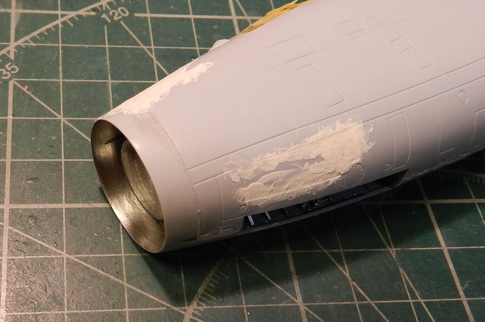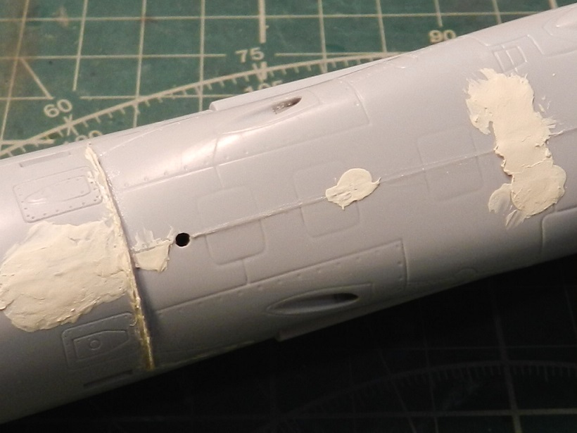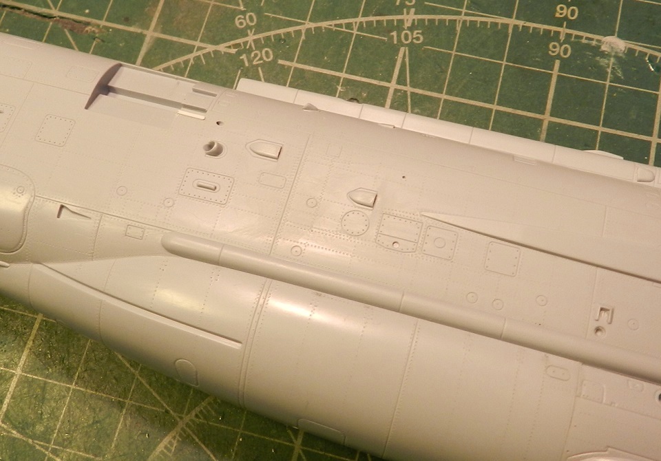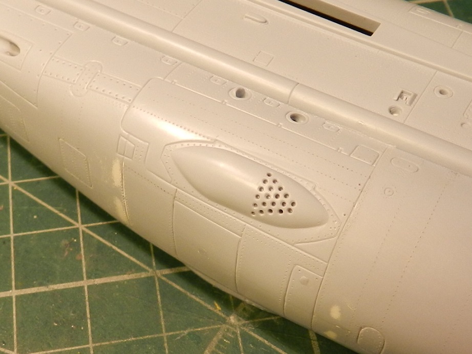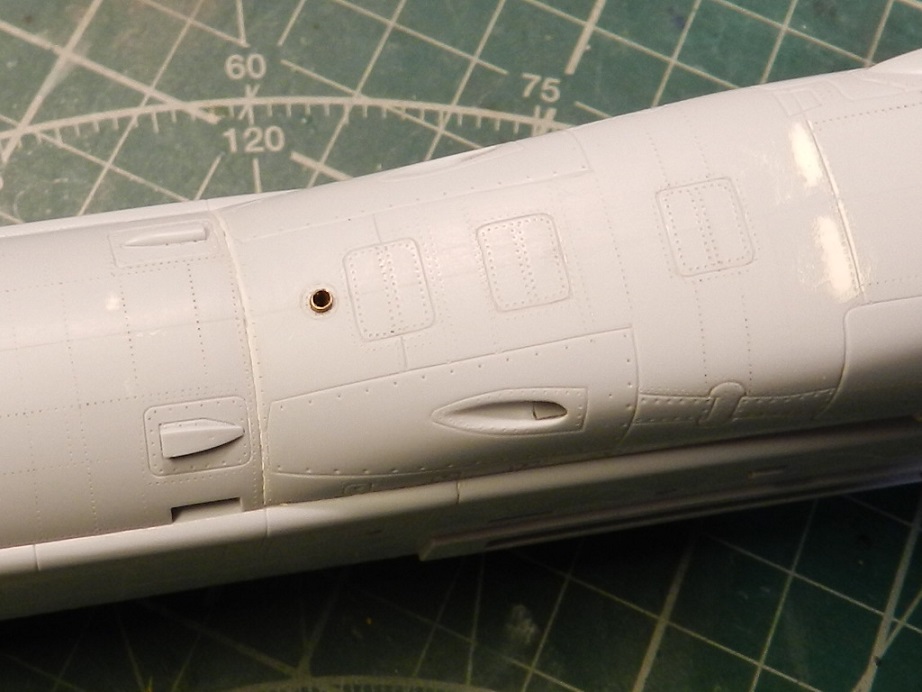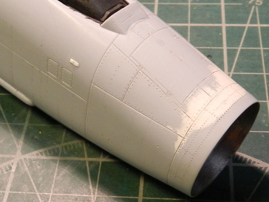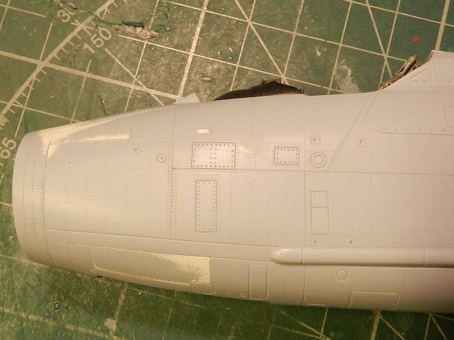 Ну продолжим!)) И так зачистил все швы и шпаклевку, просверлил вентиляцию на пушках, доработал еще различные мелкие детали, прорезал разные мелкие воздухозаборники, ну и конечно самое долгое и муторное это полностью накатал клепку по фото из книги по всему фюзеляжу.