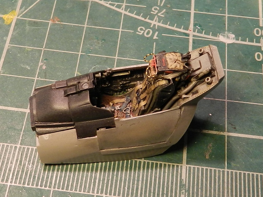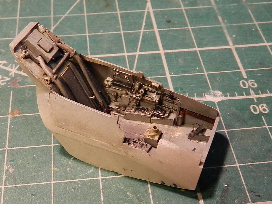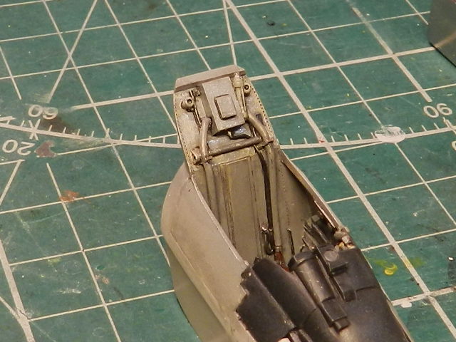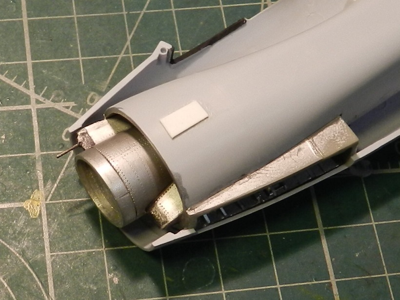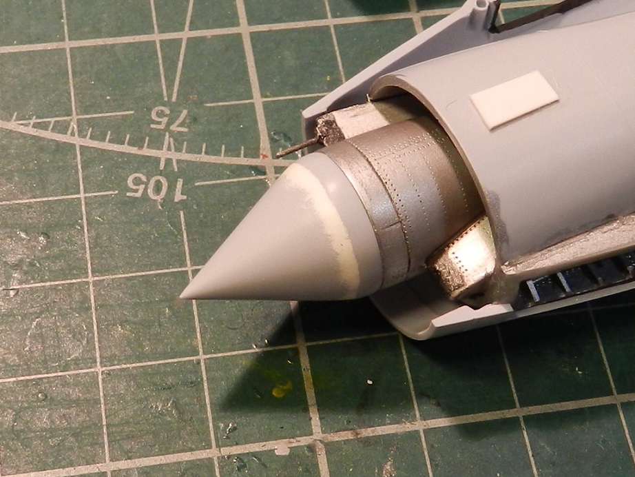Собрал , покрасил и вклеил внутреннюю часть воздухозаборника. Туда же вклеил , покрасил и расклепал обтекатель конуса и переднюю нишу.
