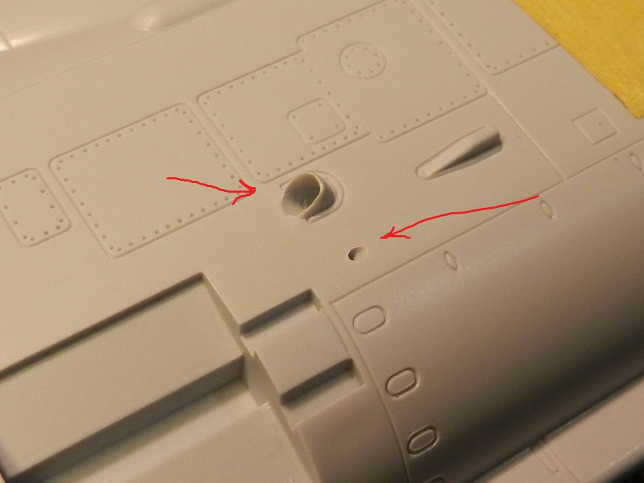 Перед тем как склеить половинки фюзеляжа кое что надо доделать. В районе движков вставил трубку на место где это было показано условно (что за отверстие не знаю, дренаж какой то) Сделал из трубки от алмазного сверла диаметром 4мм.