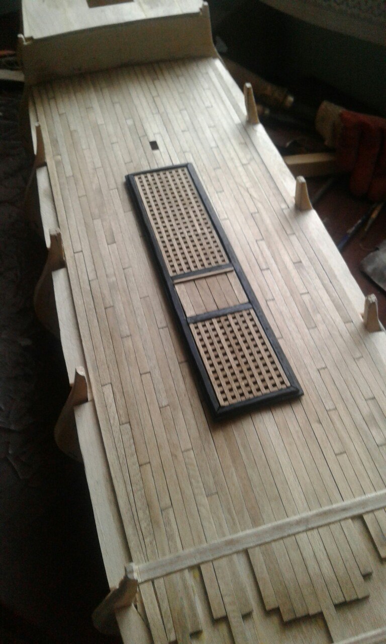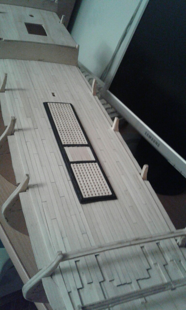 Добрый день!) Понемногу продолжаю пилить модель...постелил первую палубу=)(решетки на закреплены).