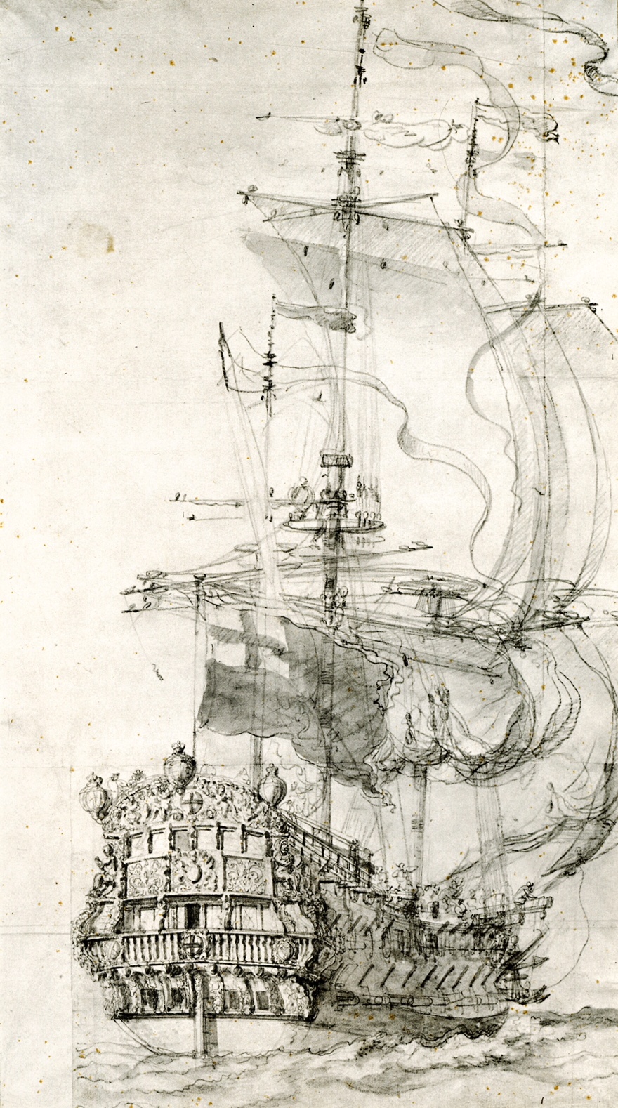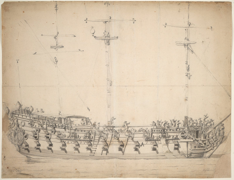 Две работы Ван Де Вельде, о которых раньше уже упоминалось. И еще одна модель из национального морского музея Лондрины: это неизвестный корабль из коллекции короля Вильяма IV. Такого же класса, как и Мордаунт (4 класс), но относят к 1695 году и написано, что такелаж выполнен значительно позже. Ни слова о каких-либо огрехах.