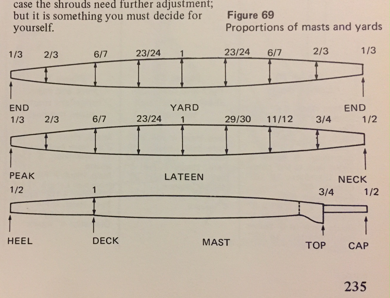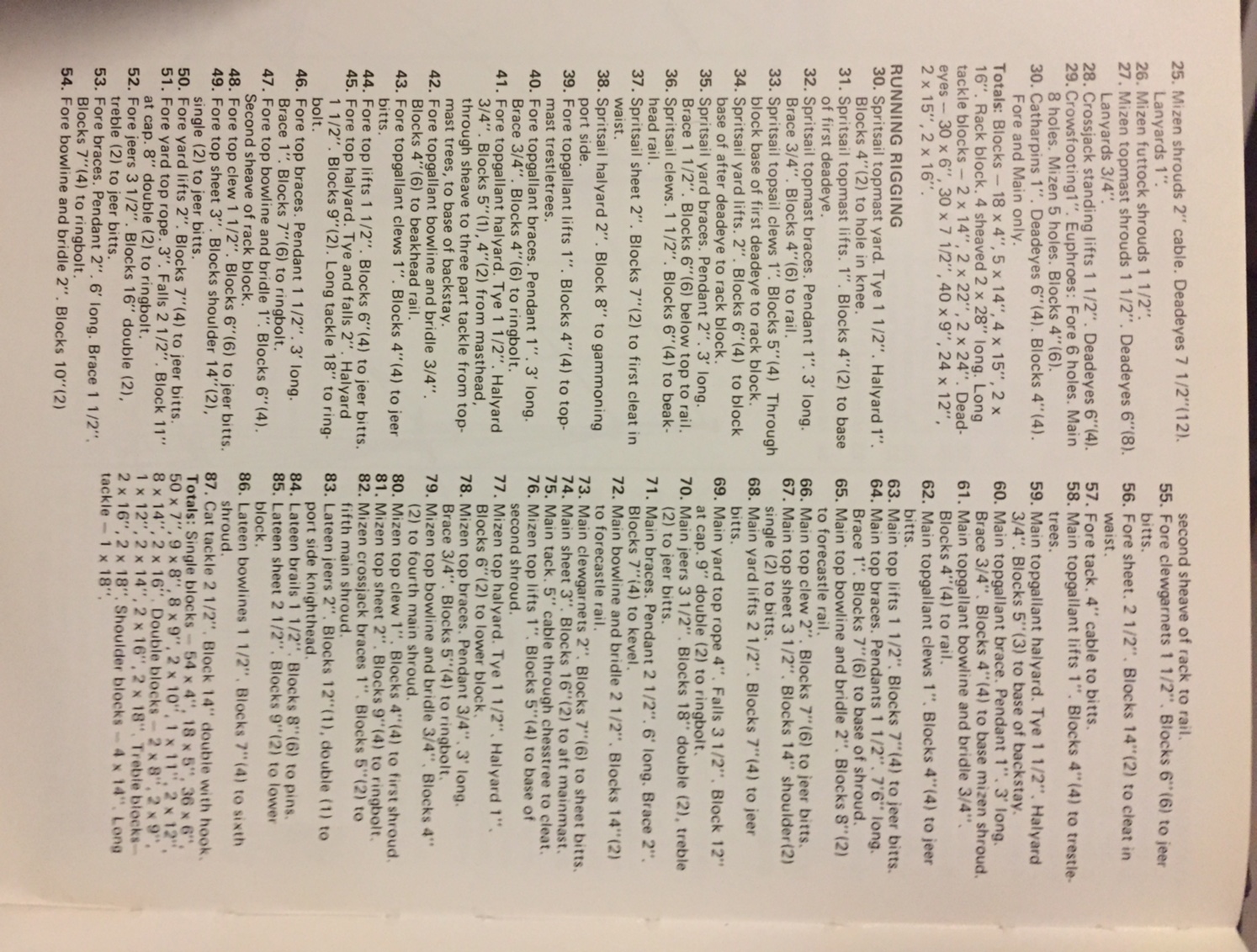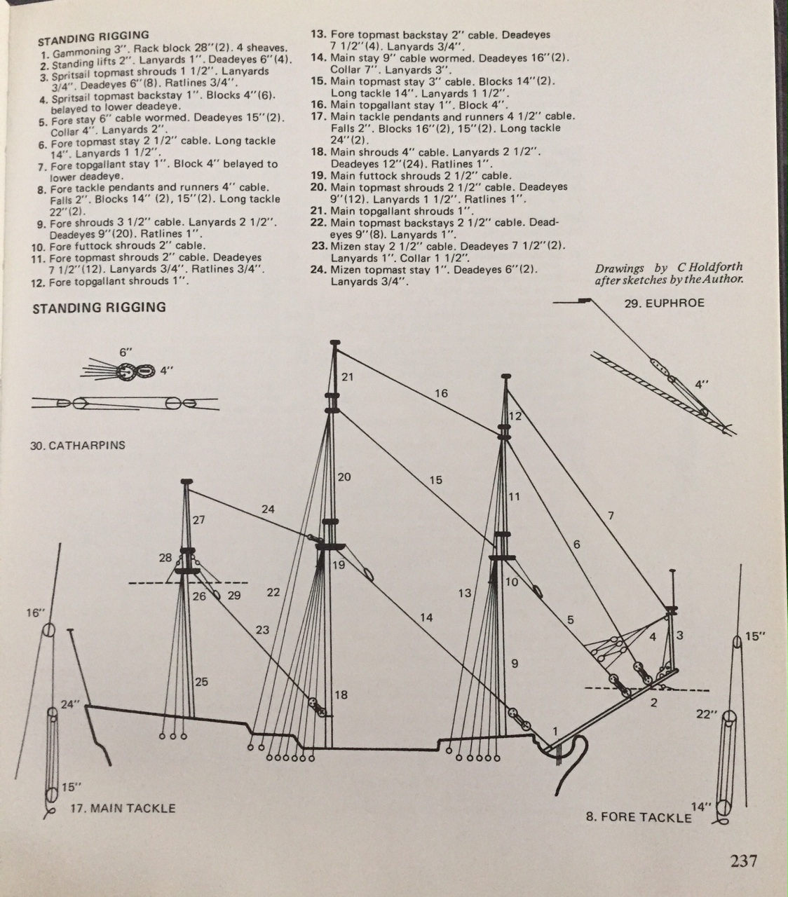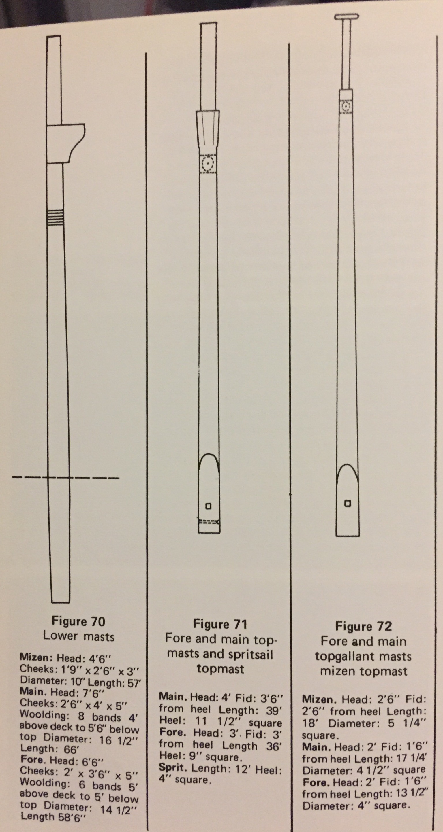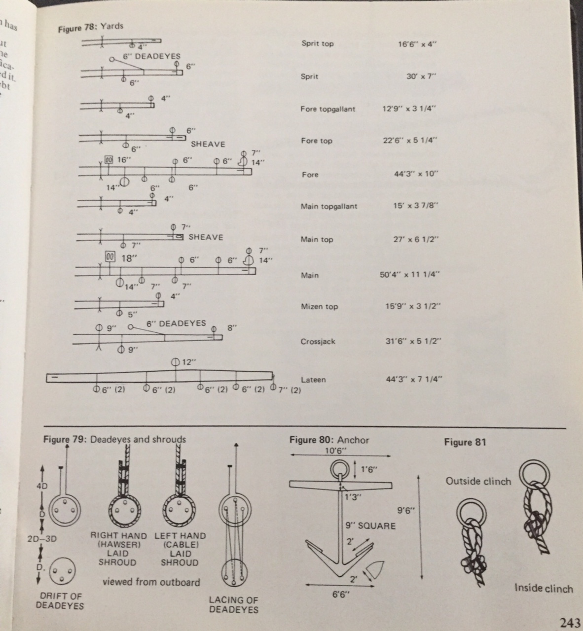 Вообще, это называется «реально подвезло». Весь такелаж и рангоут шипа 6-го класса 1684 года рождения. Подарок из 1973 года. Мордаунт 4-го класса, но он же Dean, а по нему есть все размерения мачт-рей-тд в справочнике. Ща посмотрю, куда покрупнее выложить