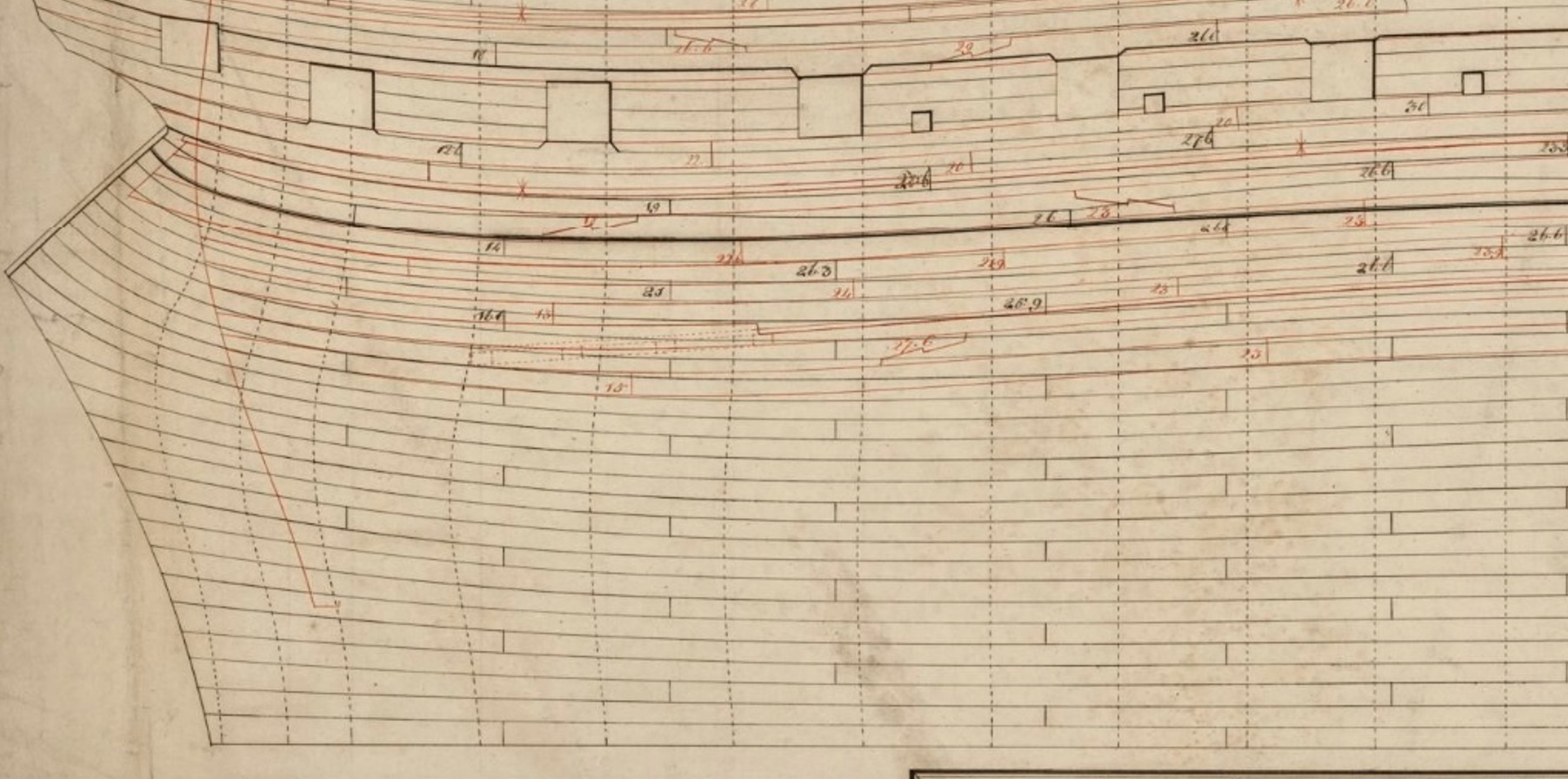 1. На чертеже порты идут не так чтобы в одну линию( выше я приводил лист боковой проекции, где видно что он вант грот-мачты и до кормы порты на 2-3мм ниже чем на палубе) как мне кажется, это не совсем законно, или же такое имело место быть?