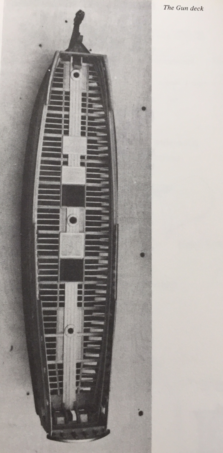 Привет! По палубе - только общая инфа идет, а Морд весьма и весьма необычный был: военно-торговый вариант. На фото: модель Морда в музее, размерения. Фигура на штевне не его, но примерно одного возраста. Пушечный порт на верхней палубе (вид с палубы) под С. Успехов!