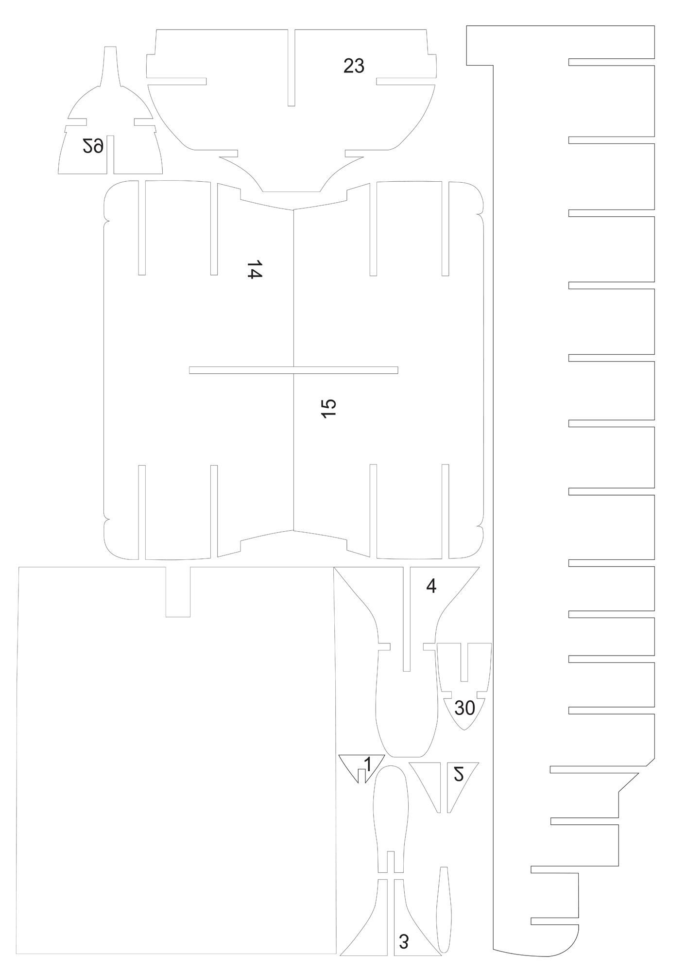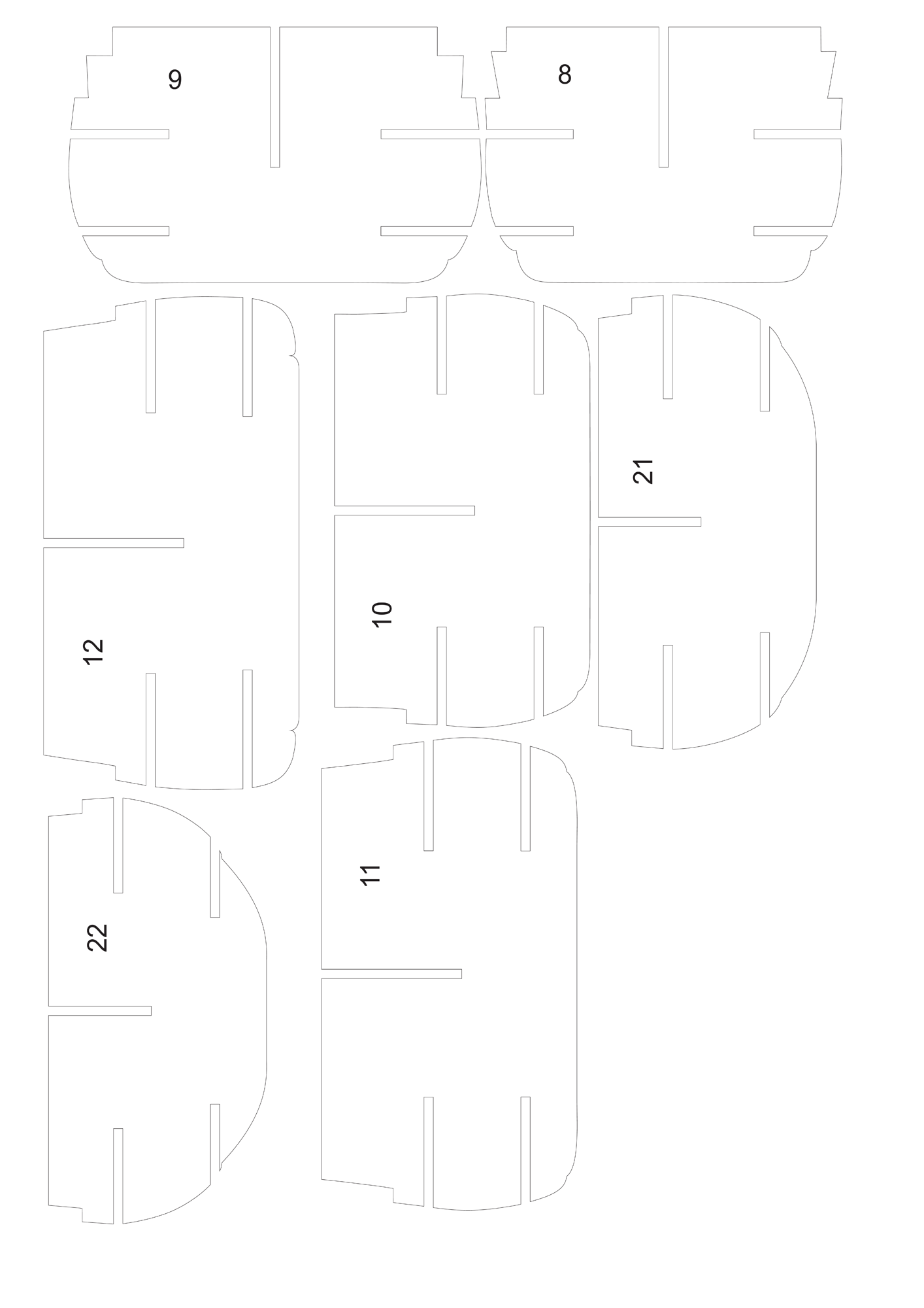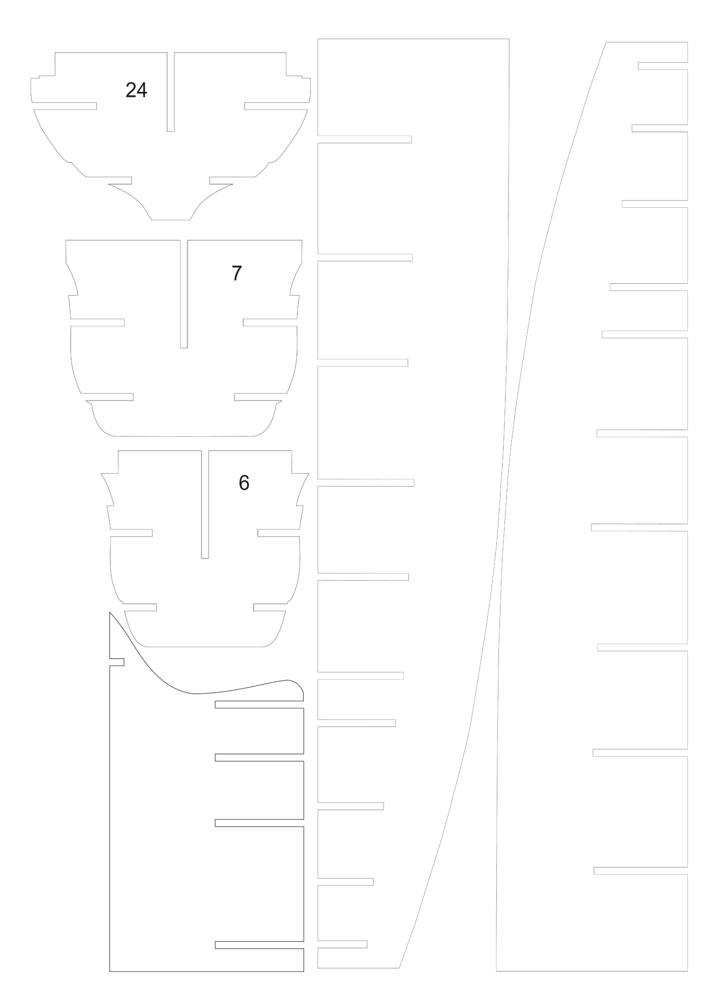 во, немного подправил теорию и сделал набор скелета корпуса. пазы - 3 мм. формат листа - А3