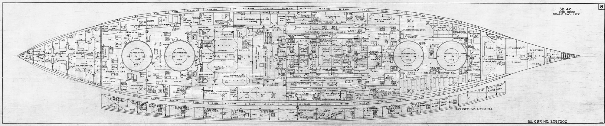 я тут озадачился сделать теорию по мексикам, благо по idaho есть хорошие план-схемы палуб, примерно-верно геометрию корпуса можно восстановить. по ним вроде все понятно, кроме одной палубы - я ее прикрепил в сообщение. как видно на других примерах - стандартная практика в схемах кораблей. из гугла я понял что это "включает часть палубы"... но как это влияет на геометрию и где именно включает - не понятно(