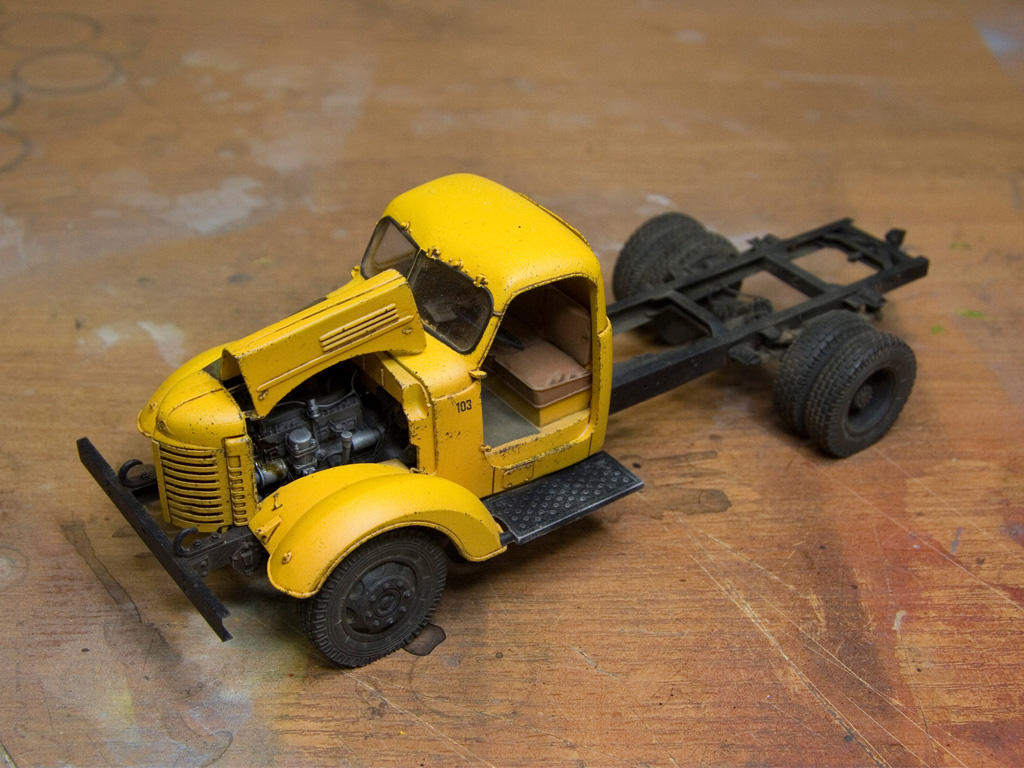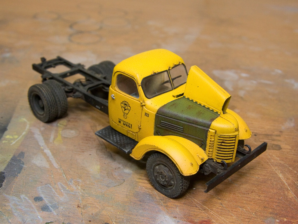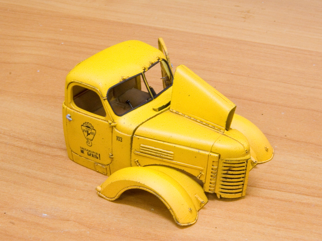 Вернувшись из отпуска продолжил ЗиС. Покрасил кабину. Осталось вырезать окна и добавить мелочи вроде щеток и можно будет поставить на место.