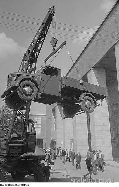 Давно ничего не выкладывал, совсем нет времени. Для начала еще немного занудства о генераторе. Так сказать в продолжении темы. Есть мнение, что все мы стали заложниками какой-то дезинформации... Как я писал, информации мало, а источники той, что есть неизвестны. Вот, к примеру, что написано на Техстори: "Генератор переменного тока служащий для привода крановых механизмов, традиционно располагался в кабине водителя заместо пассажирского сиденья, какой бы базовый автомобиль не применялся. Несомненным плюсом в конструкции крана являлась возможность работы от внешней электросети". Но я нашел на Youtube видео с ADK-3 на базе IFA-H6, в котором кран сначала запускают от дизель-генератора, а потом от двигателя машины, и хоть видео очень плохого качества, но можно различить разъем с кабелем на передней правой опоре и рассмотреть генератор и схему подключения. Он стоит сзади за кабиной и размер его таков, что остаться незамеченным он в кабине не может. Стало быть то, что написано на Техстори как минимум не корректно. Он не всегда стоял в кабине. Вдобавок у ЗиСа выход у КПП на левую сторону, под водителем и если бы генератор приводился оттуда, нужно было бы делать привод как на этой IFA. Такая штука была бы видна на фото. И еще. Был ADK-3 на полуприцепе. Там двигателя точно нет. А веду я все это к тому, что возможно, я не утверждаю, были варианты. И, возможно, что не везде вообще был привод от машины. Может был только провод. Есть же к примеру карьерные экскаваторы на электричестве... Хотя конечно они не столь мобильны как автокран... Фото IFA и крана на полуприцепе приложу.