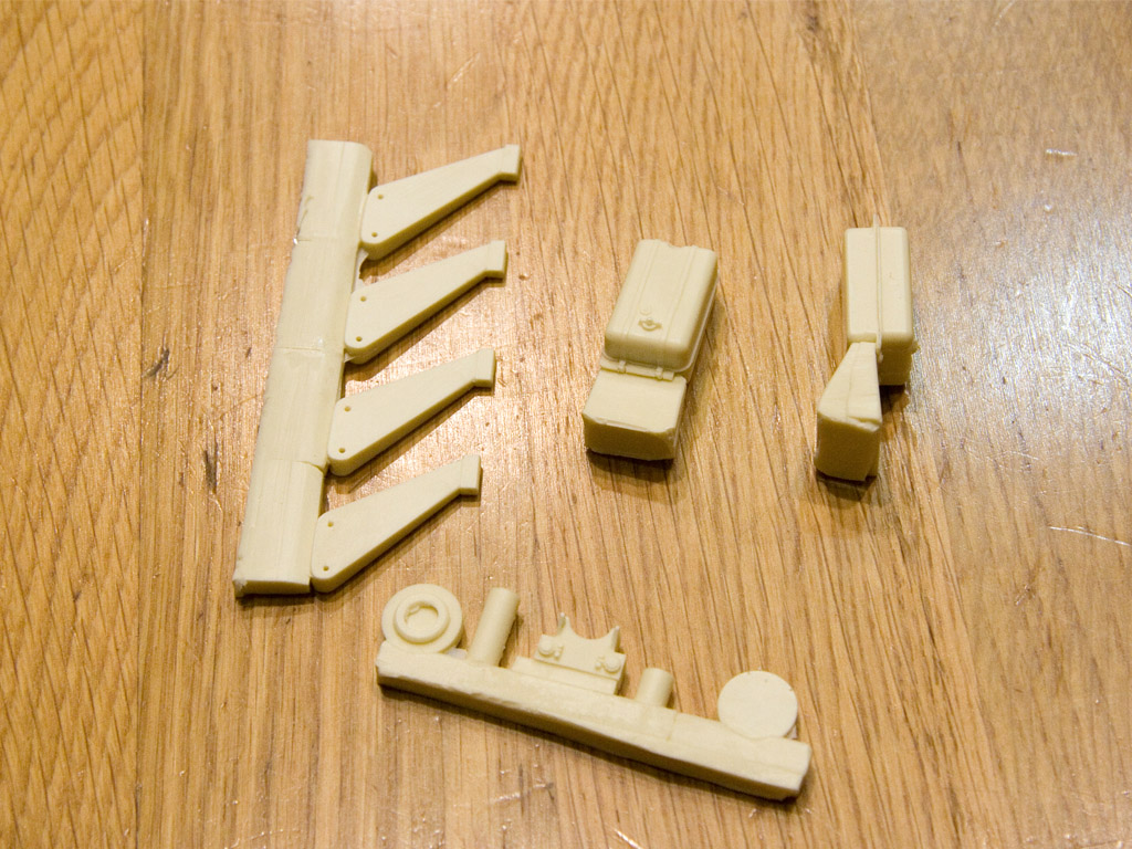 Находясь в заслуженном отпуске, потихоньку продолжаю работу над моделью. Перевозить на дачу подсобранный ЗиС я не решился. Взял с собой кран и решил подготовить его к сборке. Не спеша под пивко и шашлычок отпилил все что есть от литников. Вот не люблю когда впечатывают детали в кирпичи.