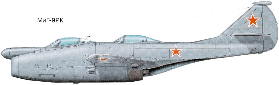 "МиГ-9Л (ФК) - экспериментальный самолет, летающая лаборатория для отработки систем самолета-снаряда КС. Предназначалась для отработки систем самолета-снаряда КС. Выпущена из производства 14 мая 1949 г. на базе серийного истребителя МиГ-9. Экипаж состоял из двух человек: летчик и оператор. Полеты летающей лаборатории начались в 1949 г. и продолжались в течение 4 лет."