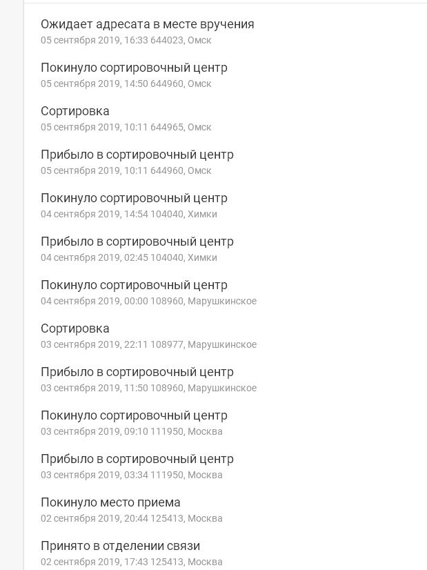 @АлАР написал:Я в позитивном шоке. 02 сентября мне из Москвы и Московской области отправили 2 посылки. Сегодня в первой половине дня я их уже получил. Почта России прям ускорилась )))
