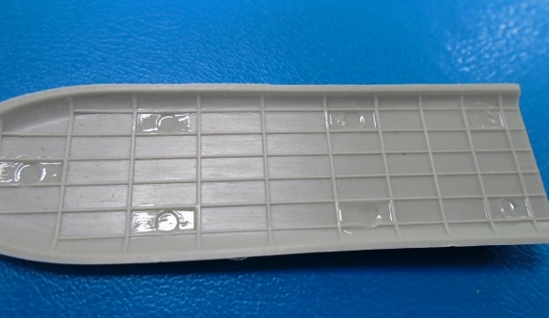 На полу и потолке грузовой кабины попробовал метод - который увидел на YouTube- чтобы не снести "в ноль" имитацию поверхности потолка - прошелся клеем по следам толкателей.