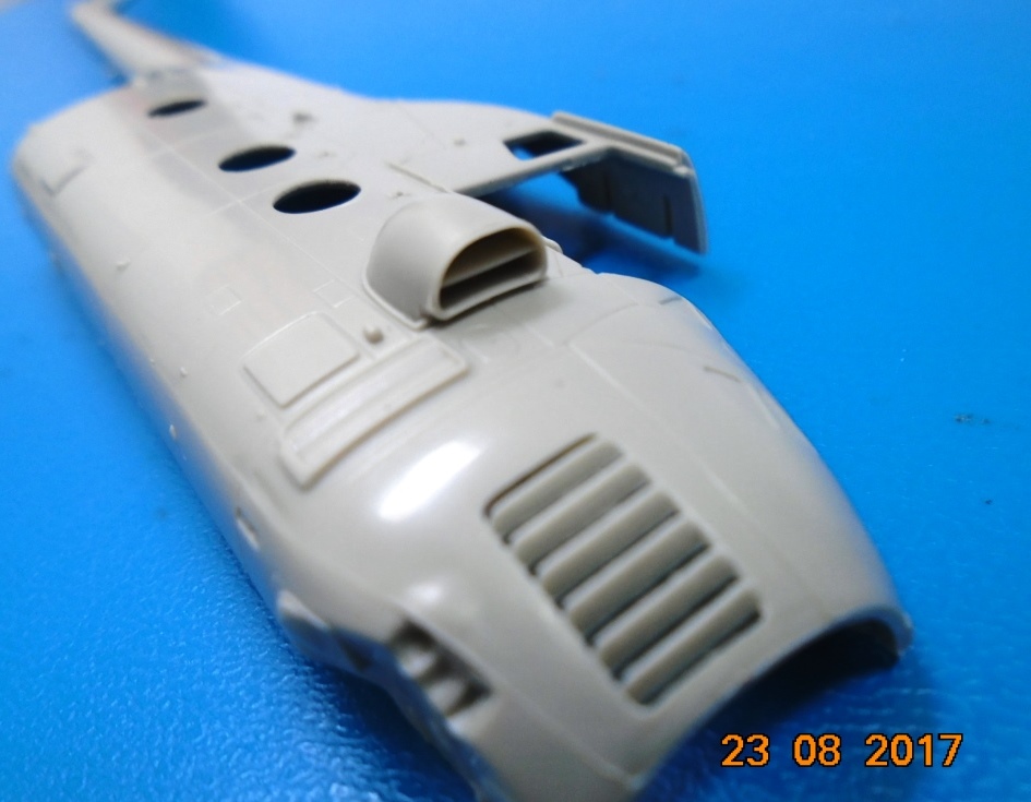 Приложил половинки фюзеляжа и думаю, что скорее всего на "жабры" изнутри сеточку наклею -