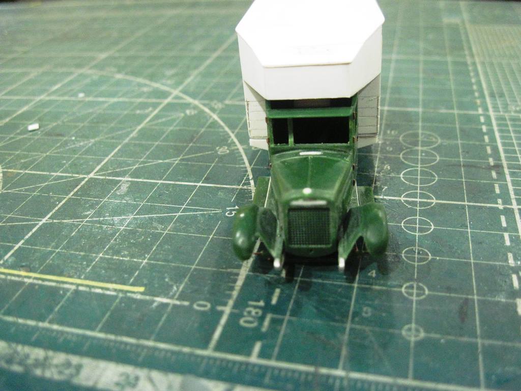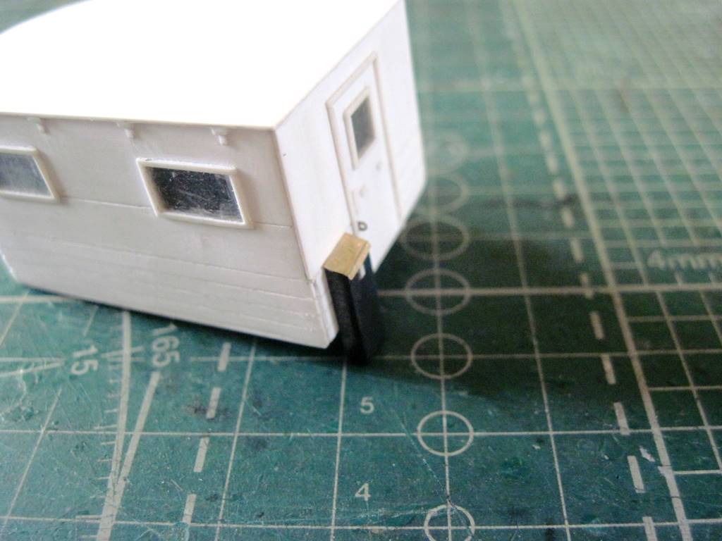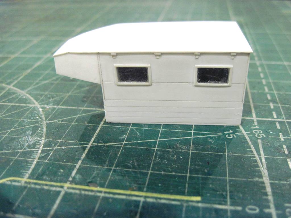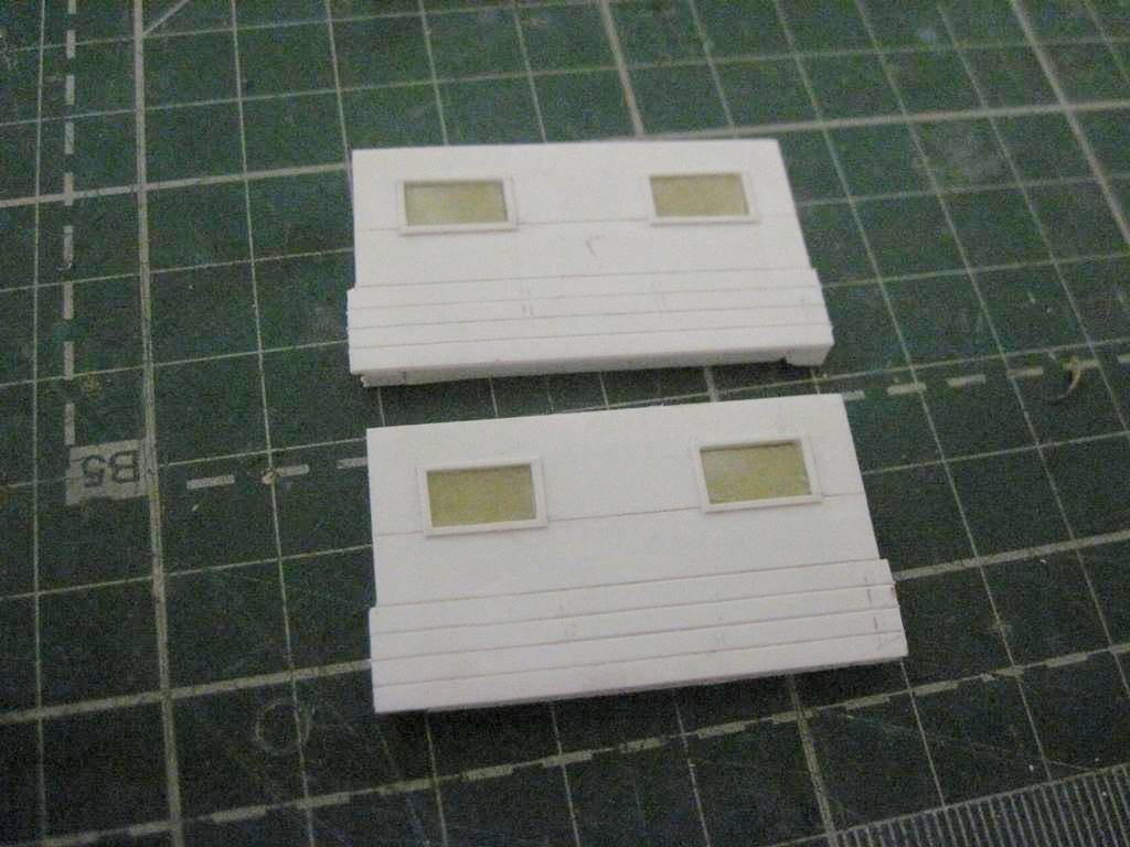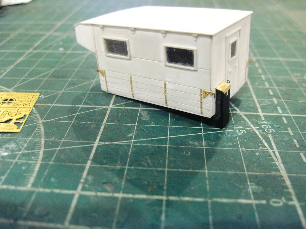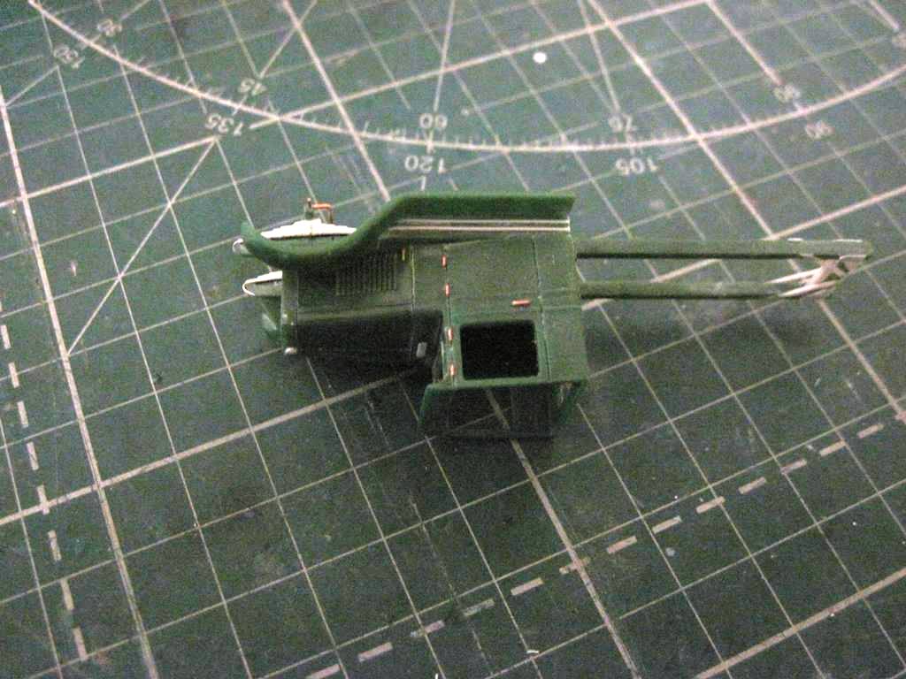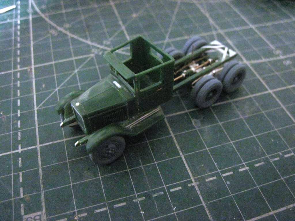 Склеил кунг.. На боковых откидных бортах (верхних) имитировал механизм открывания. Петля - тянутый литник 0,4 мм, сама петля - сточенный квадратный пруток 0,5 мм.