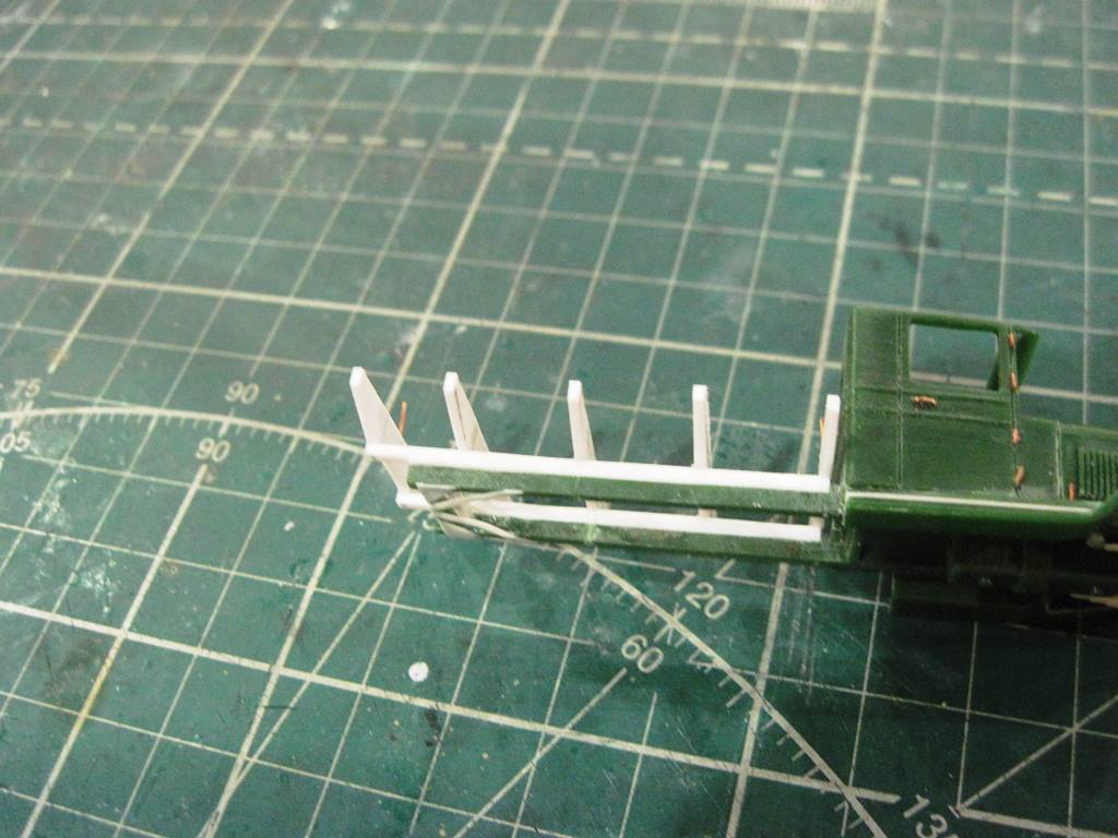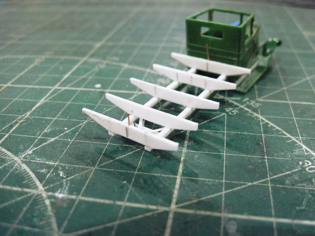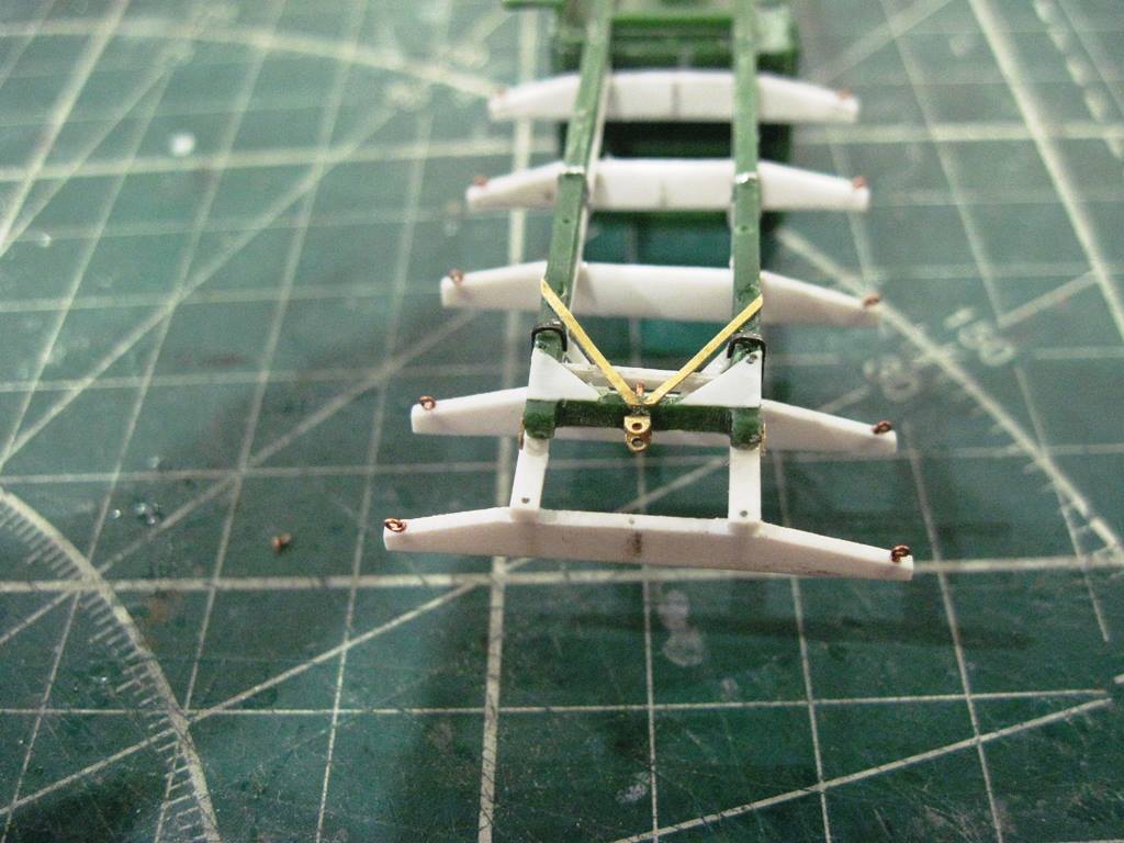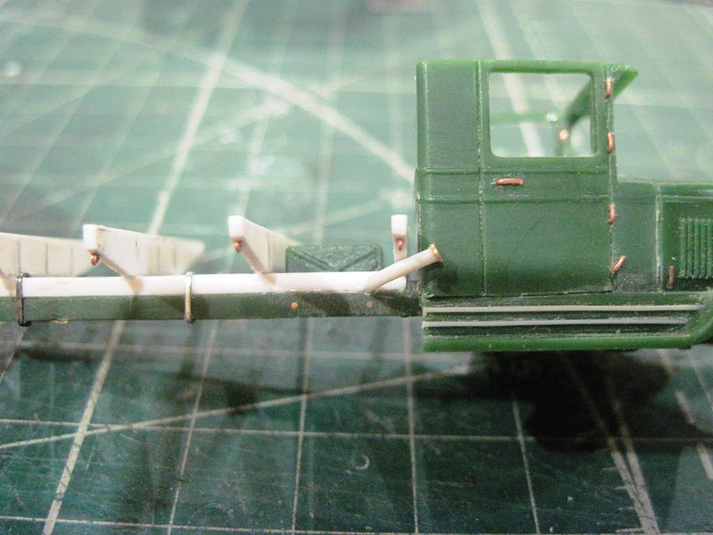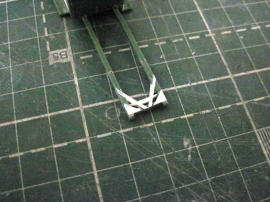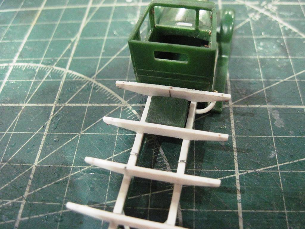 С прутка 1,5 мм имитировал продольные балки, сделав на задней части характерную ступеньку. С пластика резанул поперечины.