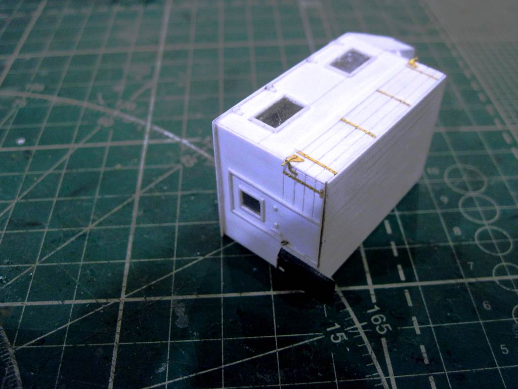 Окантовку окон и двери выполнил прутком 0,5 мм, впоследствии сточенным до 0,2 мм.