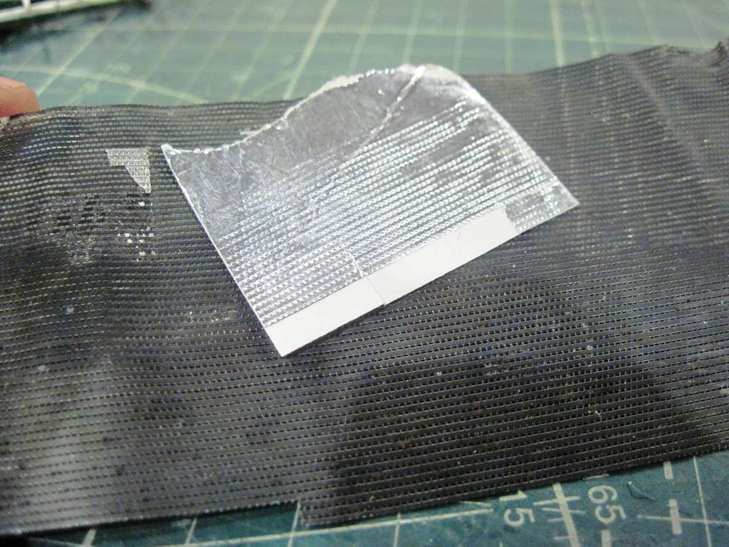 На сетке от монитора выдавил выштамповку, имитирующую противоскользящее покрытие подножек.