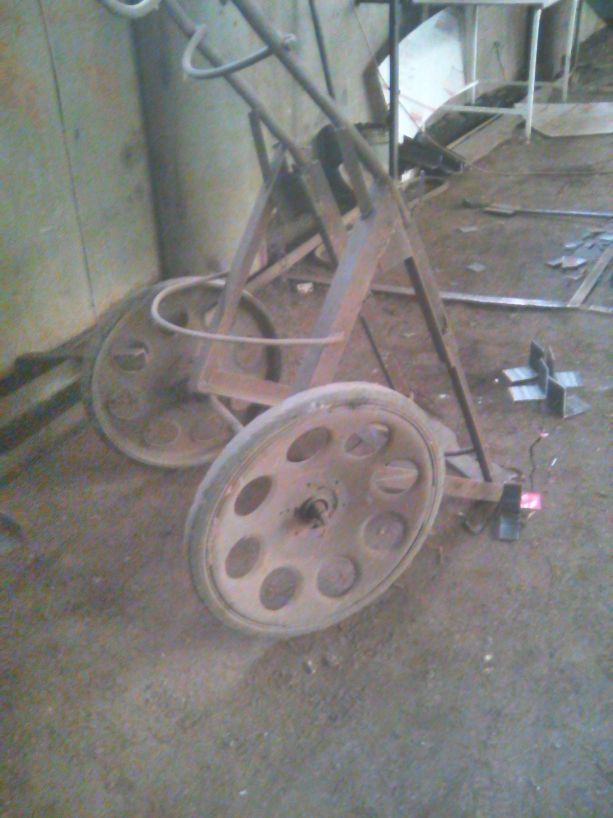 Здравствуйте!Вот какую находку я обнаружил у себя на работе.Колёса(опорные катки) от БТРа "Ганомаг" времён ВОВ.Надпись "CONTINENTAL" читается с трудом.Вот такая вот кислородная тележка,так сказать-эхо войны!