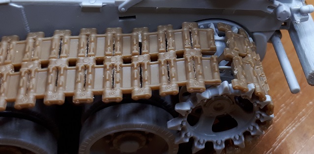 И чуть подумав я понимаю что если бы и была возможность прокрутить вал, то я бы расстояние не сократил бы, а только увеличил. И тем более 80 траков не хватило бы. как заявляет трумпетер. А он даёт настоящее число траков ссылаясь на официальные данные прототипа.
