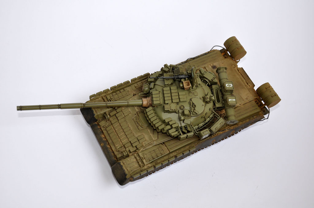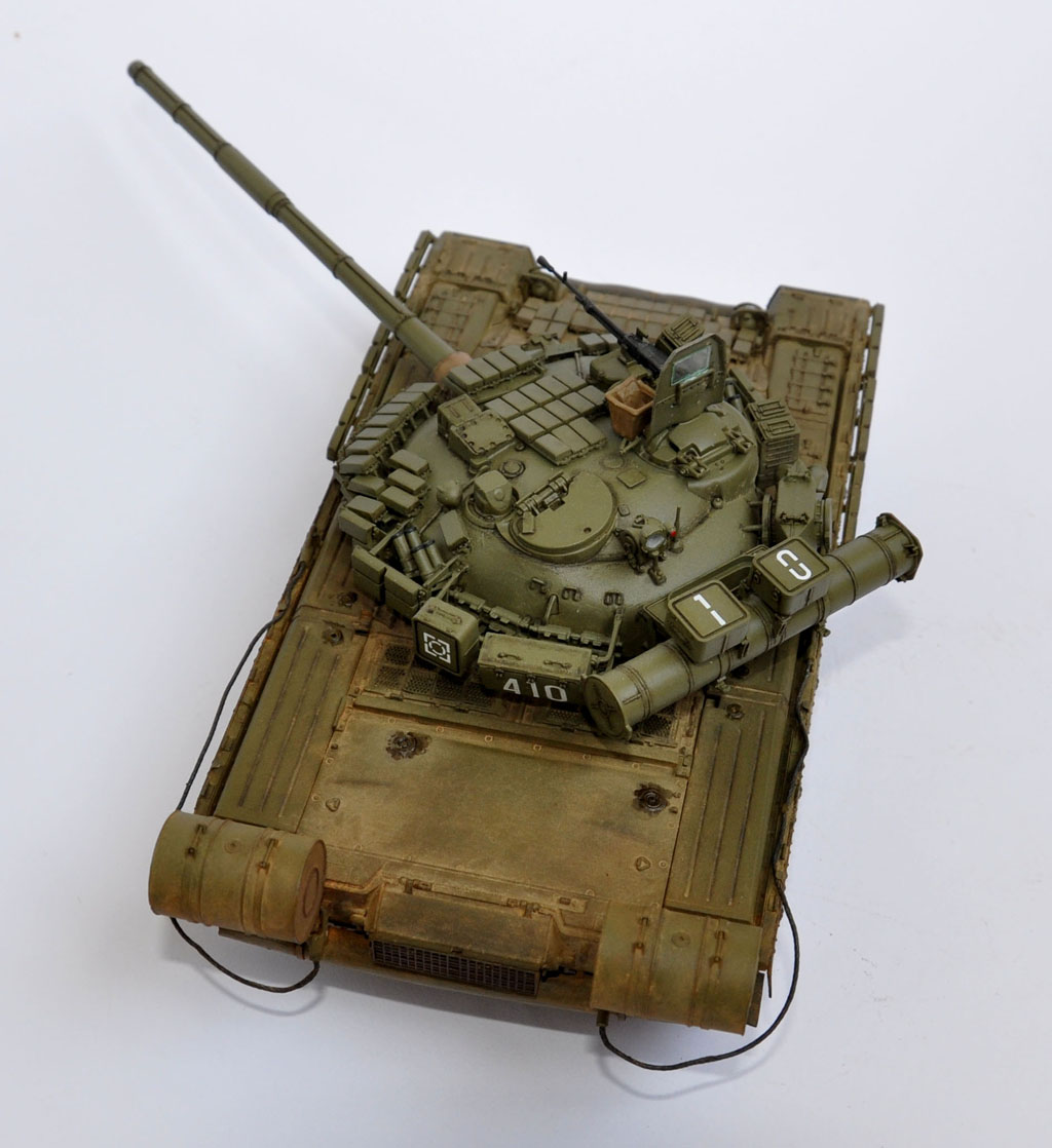 Собрал практически полностью корпус - осталось бревно повесить, троса склеить с коушинами. После покраски ходовой приклею борта и приклею шланги к топливным бакам от корпуса. Башня и траки ещё не тронуты (в плане сборки). Ориентировочно буду слегка тонировать \тот танк как т-90 на фото ниже.
