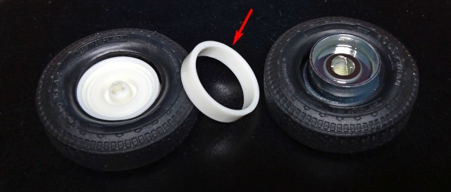 Чтобы внешняя резина не сползала к внутреннему колесу, я подклеивал кусочки пластикового прутка. Лучше, конечно, было бы цельный, но... мне его катастрофически не хватало на тот момент...