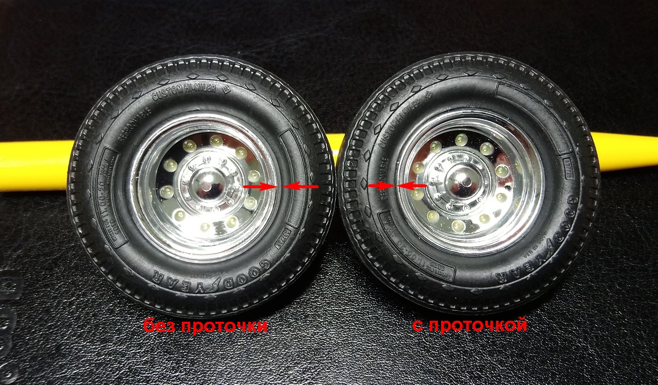 Край обода колёсного диска не прилегает плотно к боковине покрышки, приходится протачивать посадочное место, что бы покрышка глубже садилась и саму покрышку тоже нужно немного сточить. На фотках показал стрелочками, думаю будет понятно:
