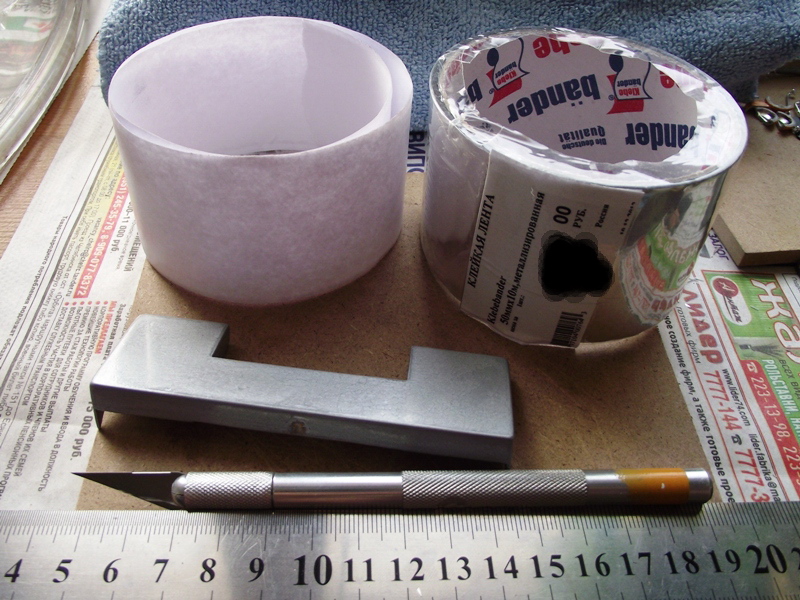 Упаковочную плёнку от цветов и конфет пробовал. КрАЗ смола, от минманфактори. Обычный клей (ревел, тамия) не держит, а супер - либо разъедает (пятна появляются), либо морщины идут((