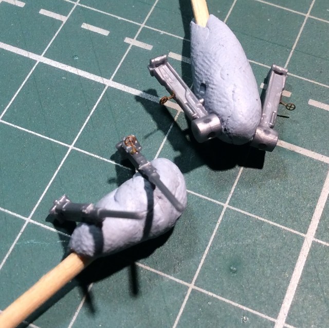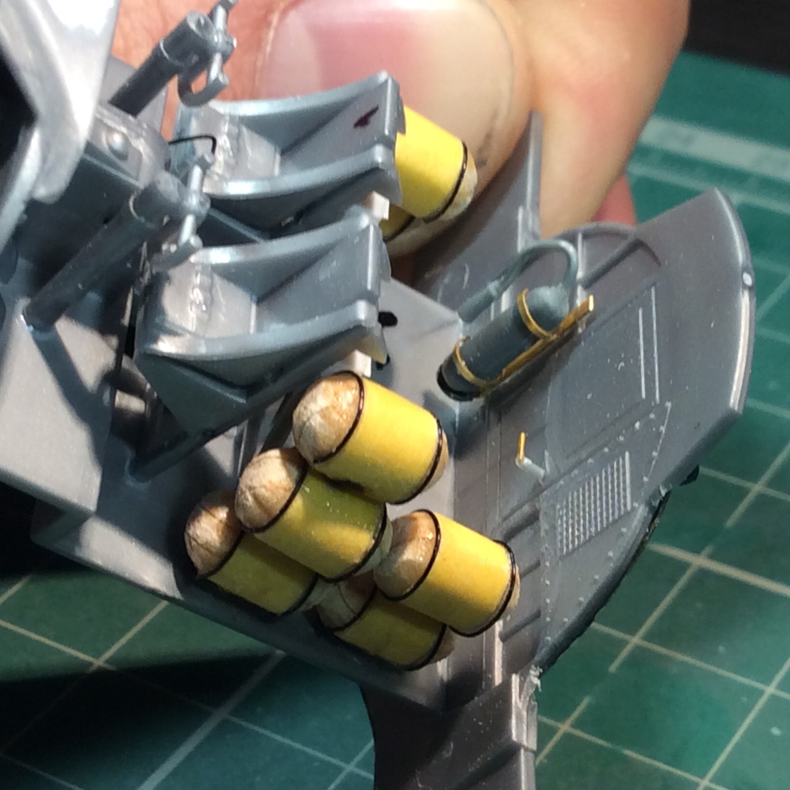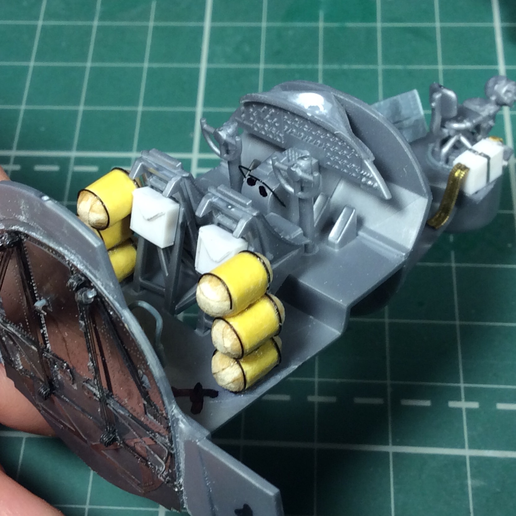 - для передних пулемётов сделал ящик с патронами из доширака , крепежный ремень -фольга , пулемётные ленты - запасы , тянуть их к стволам не стал , не очень мне это дело понравилось , тем более одна лента явно не родная ... пусть висят и лежат .