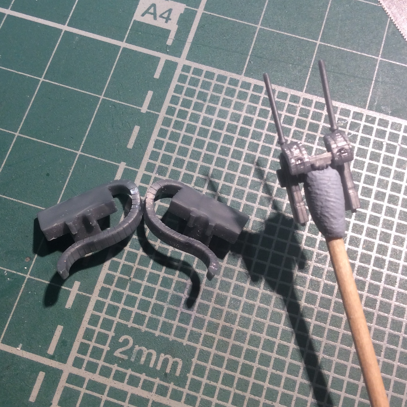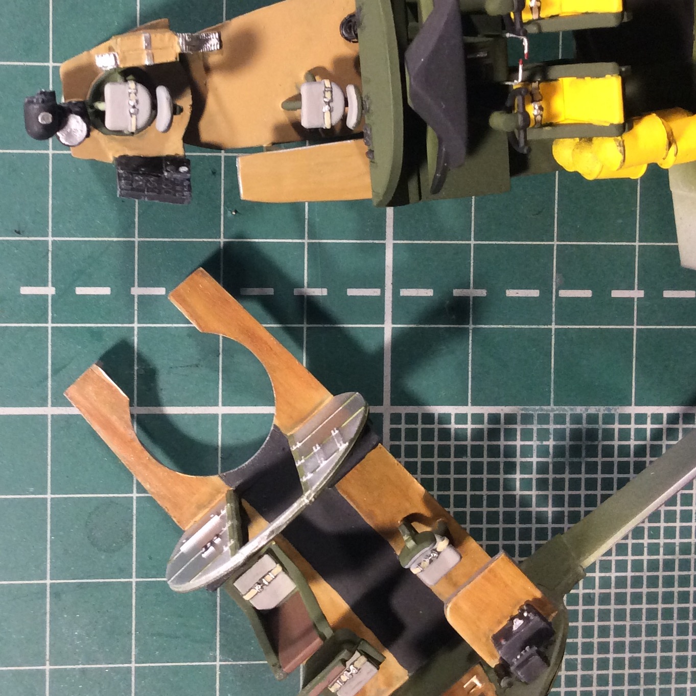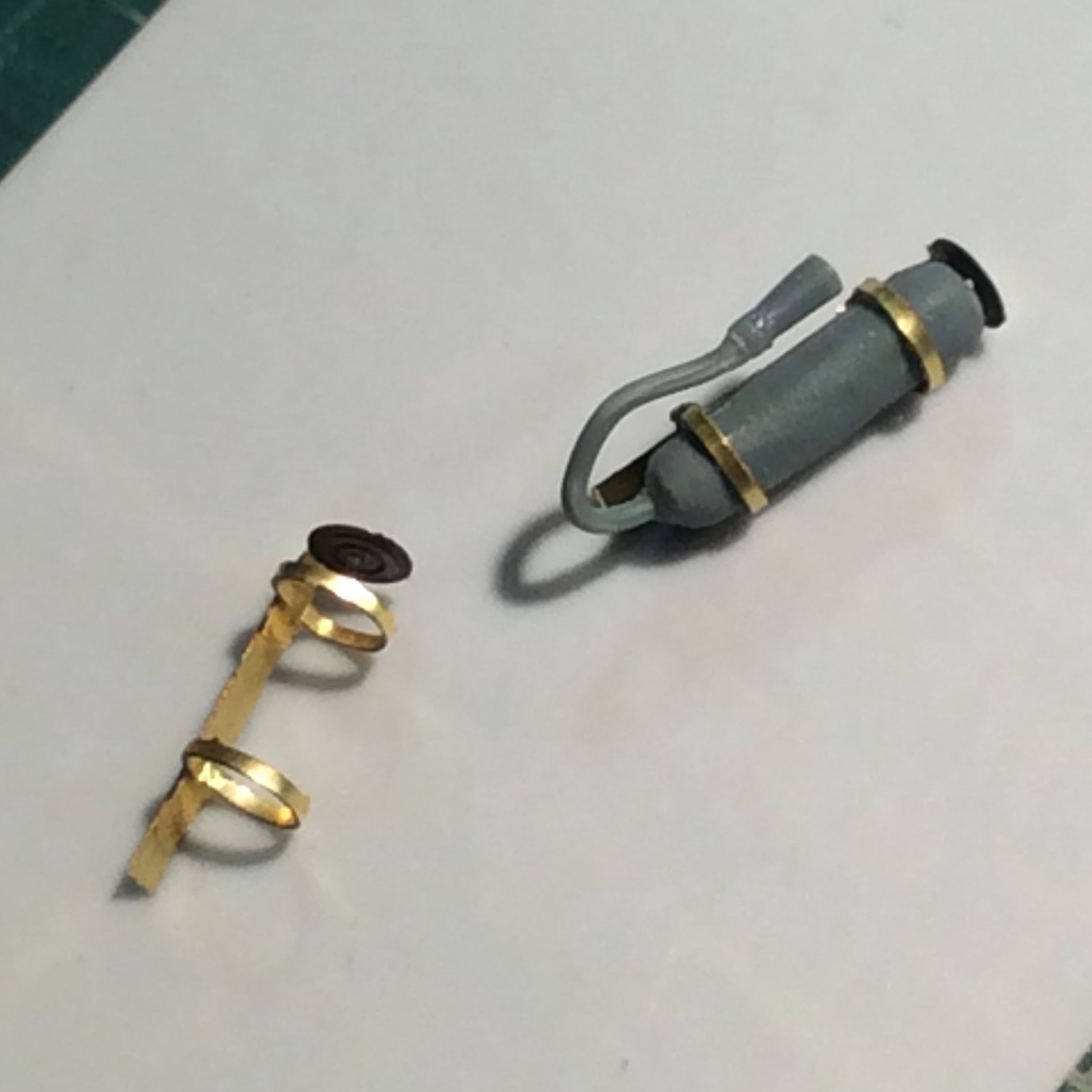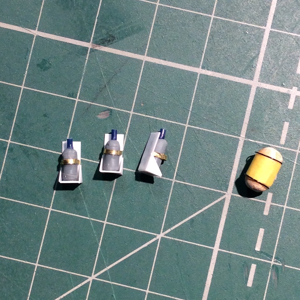 - сделал огнетушитель и крепления под них . Спереди будет пустое крепление . Из Обресков рамки от травленки.