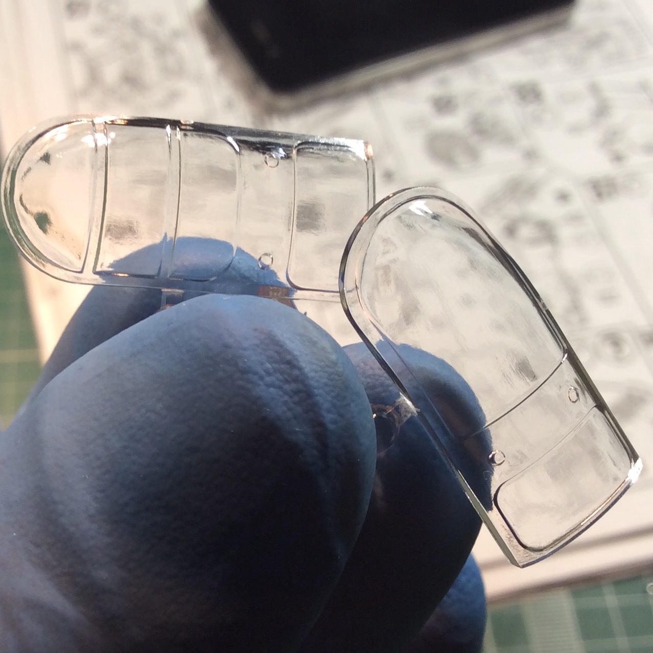 Меня вот технологическо-дилетантский вопрос интересует. Как удерживатьт и обрабатывать пластиковую деталюшку размером до 3 мм? Вот для того-же оснащения кабинета или ещё где-то. В пальцах она буквально теряется, пинцет не удерживает. А её ведь сточить надо, зашкурить.