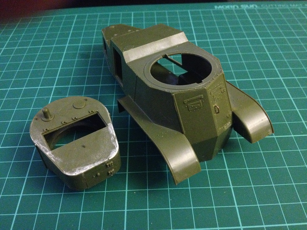 Немного поработал с башней, сразу подшпаклевал. Интересная вещь, я вам скажу шпаклевка - тоже впервые пользовался, она какая-то полу сухая, размазывается тяжело, и так и сяк с ней ковырялся, в итоге пальцом было легче всего замазать щели