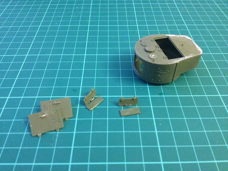 Вчера опробовал только что приобретенное мини-сверло, сделал ручку из проволоки на люк для командира и наводчика на задрем бронелисте, и подогнал сам задний бронеелист.