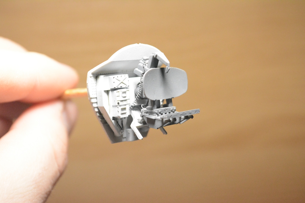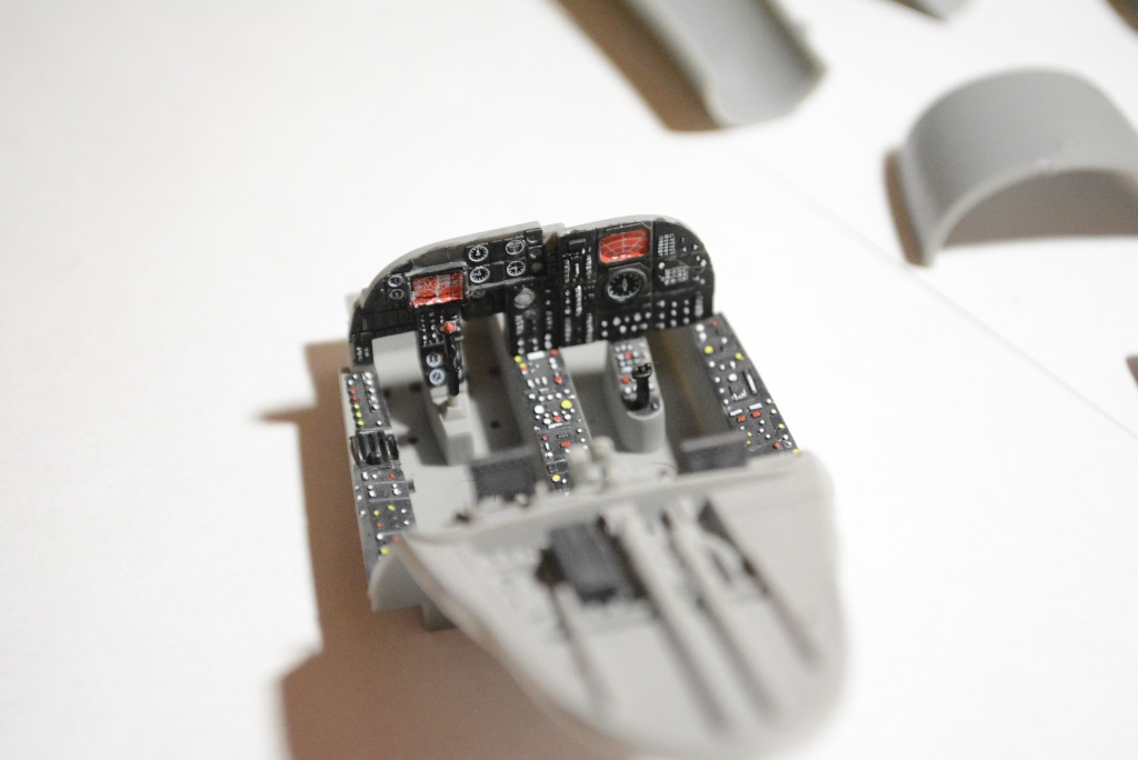 Стройку начал с кокпита, немного закосячил декаль левого экрана, она сползла вниз и я вовремя этого не заметил. Снять уже не получится, только сделаю хуже и обдиру ее. Нижний край закрашу в цвет панели и в собранном виде этот косяк будет незаметен.