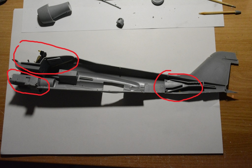 Немного непорадовали ниши "предполагаемых "воздушных тормозов. В наборе имитация этих ниш присутствует, НО в данной модернизированной версии самолета воздушный тормоз убран и хобибос предлагает просто закрыть нишу заглушкой и скрыть от глаз все это добро. Пока нахожусь в глубоких раздумьях закрыть ниши по инструкции или все же каким-либо образом отразить их на модели. От дельного совета не откажусь!