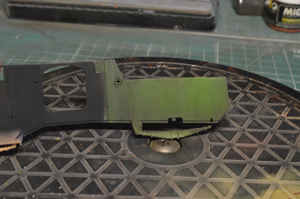 Пришлось полностью спилить боковые смотровые люки, так как ICM отлил их вместе с бортами. На их место вклеил рамки. Сами люки сделал из травления. Можно теперь их сделать открытыми.
