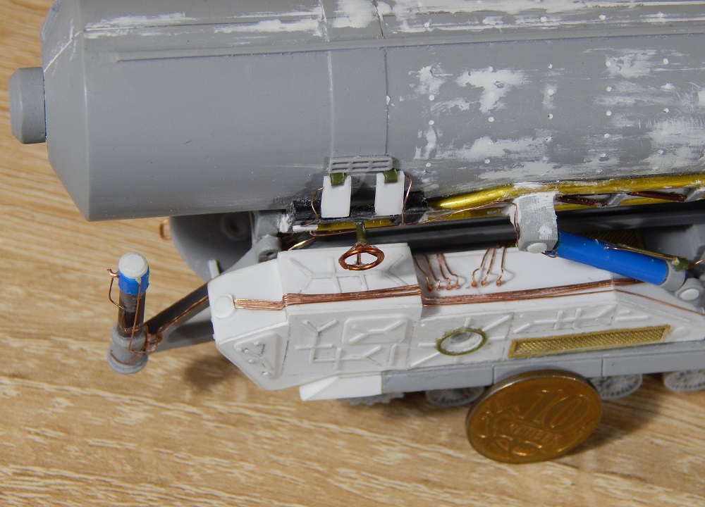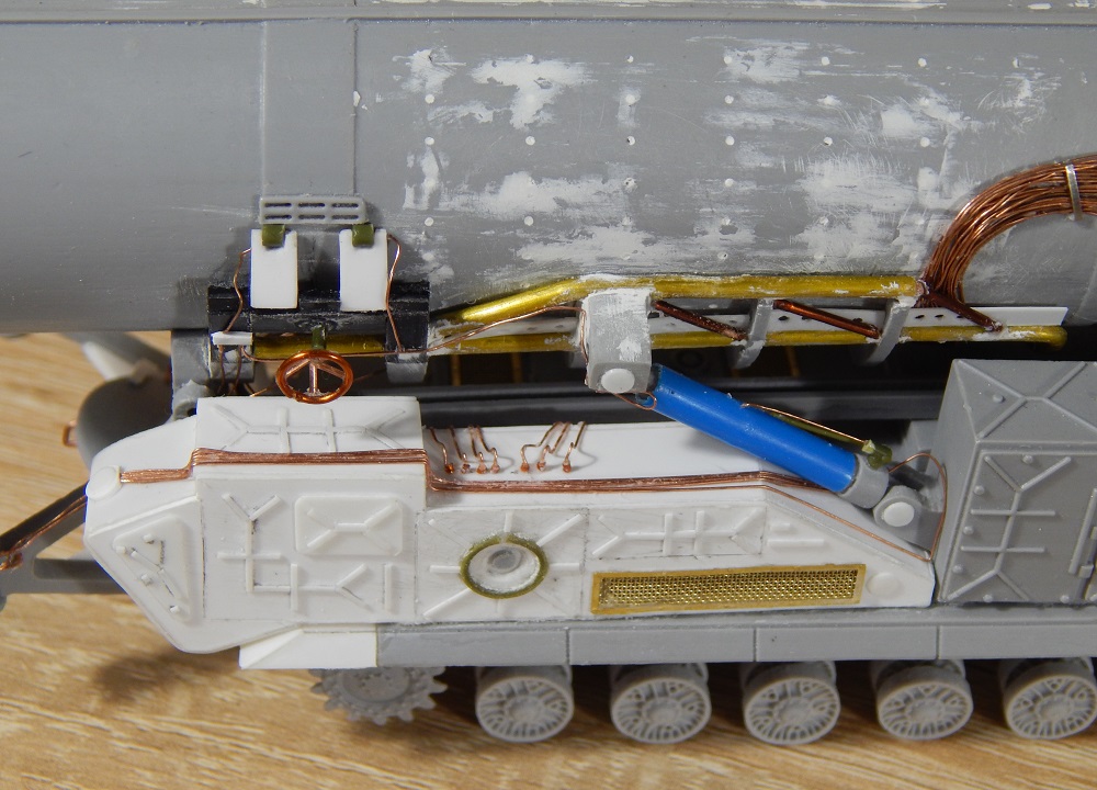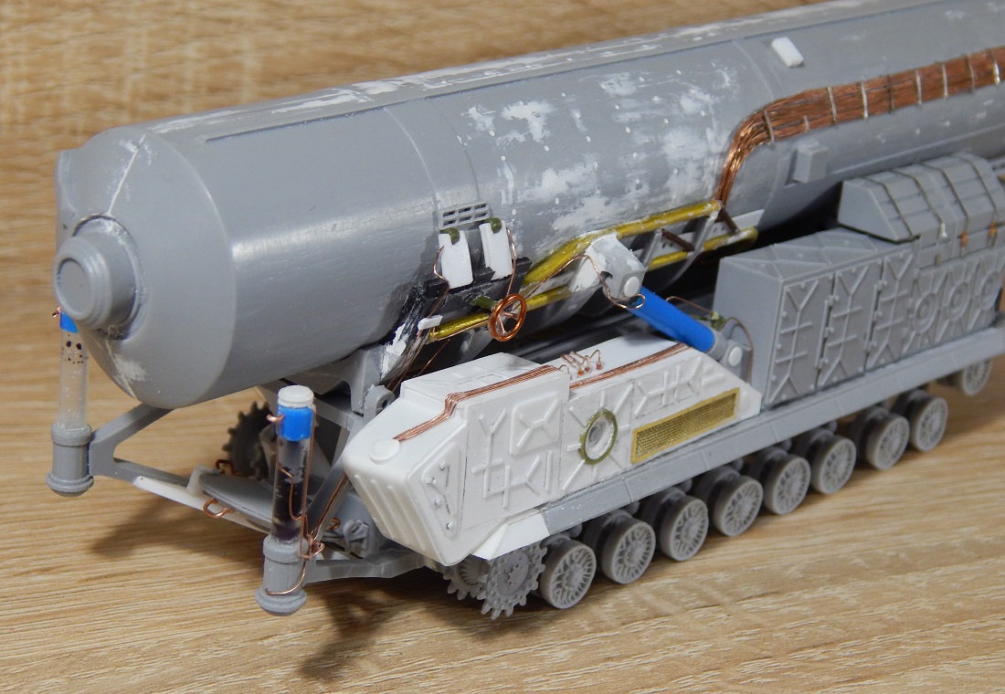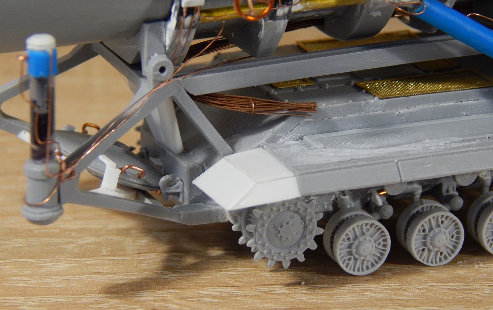Вот на модели попытались поставить двойной ролик соизмеримый с клыком гусеницы.
