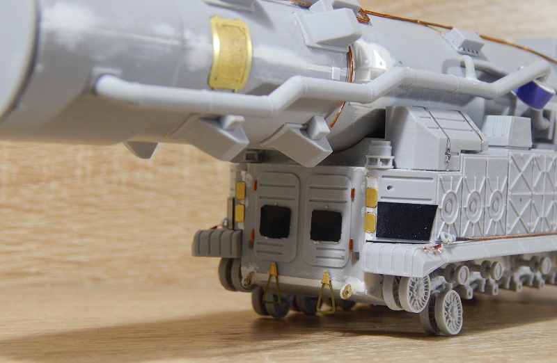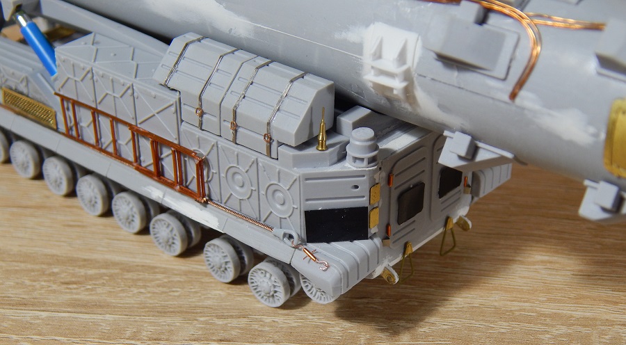 Сделал на правый борт лестницу, приклеил петли передних дверей которые удалил еще в начале сказки, переделал передние подножки