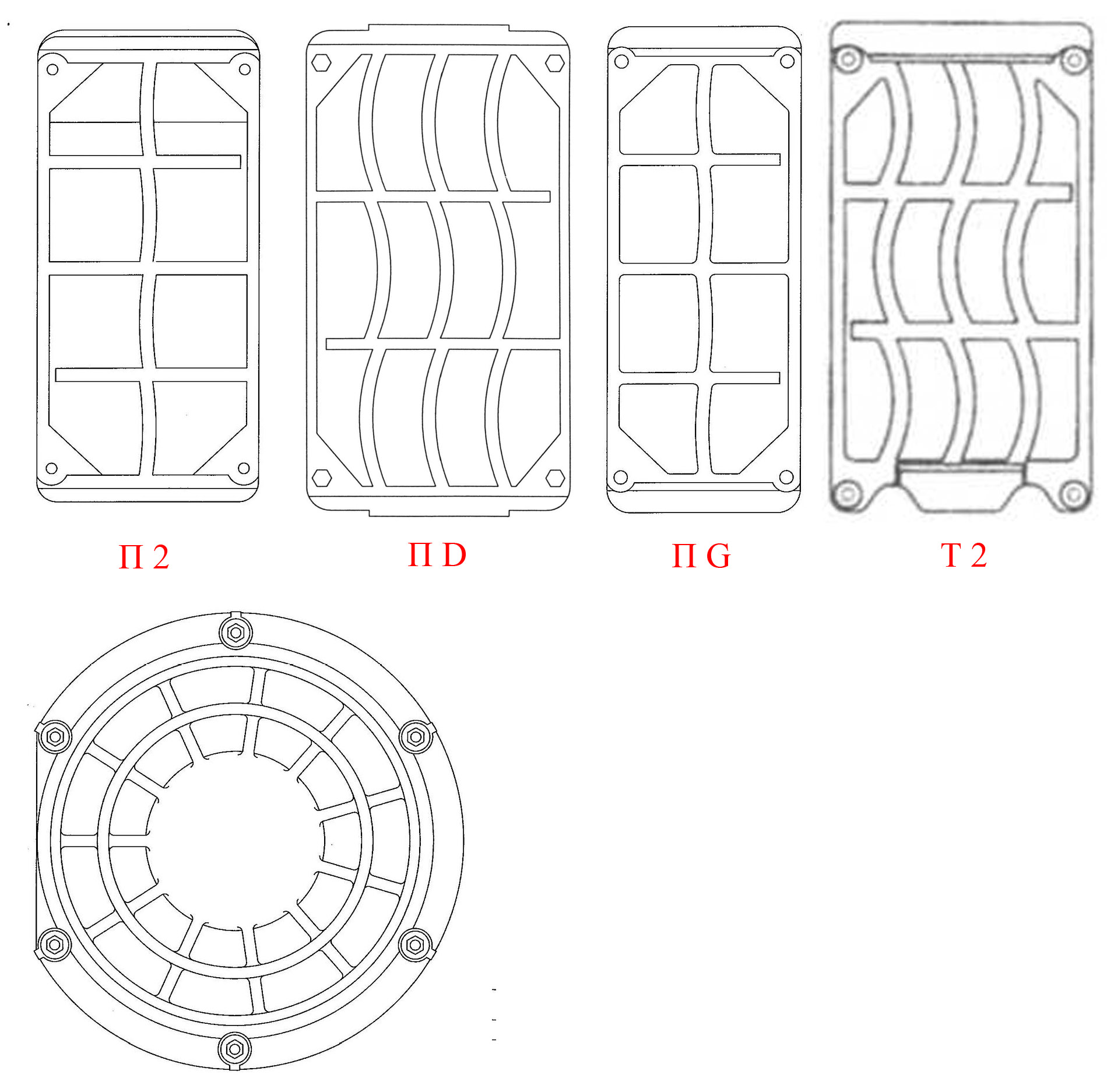 Кожухов на выбор аж 4 разных вида, причем ни один не подходит по рисунку перемычек. Самый левый - слишком большой.