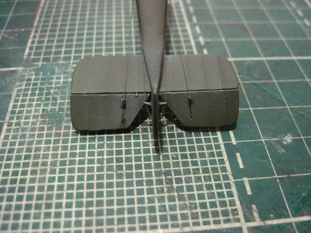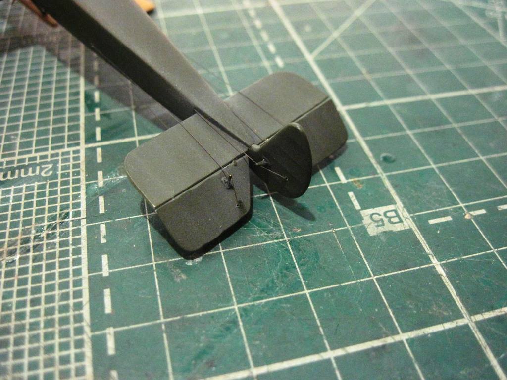 Воткнул элероны. Тяги от промежуточных расчалок управления элеронами имитировал тянутым литником.