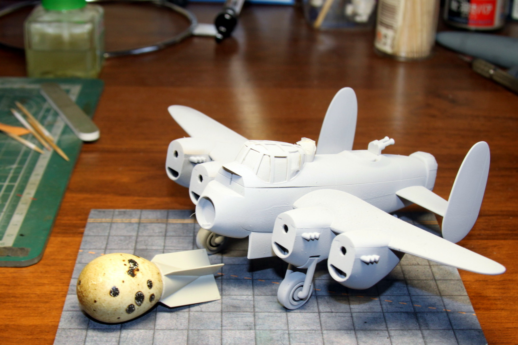 Собрал, загрунтовал... Есть огрехи, подработаю.. Такой вот "эгг-слем" добавляется.. Если не найду меньшего яйца, то просто будет рядом, на тележке..