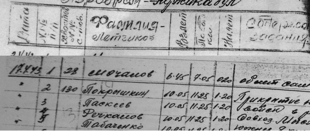 вот оно: 130 - Покрышкин, а 13 - вообще Речкалову вписали, который еще и Табаченко очевидно на руки взял в кабину))) причем явно другой рукой "13" и исправления видны, а Паскеев походу руками махал-летел?)