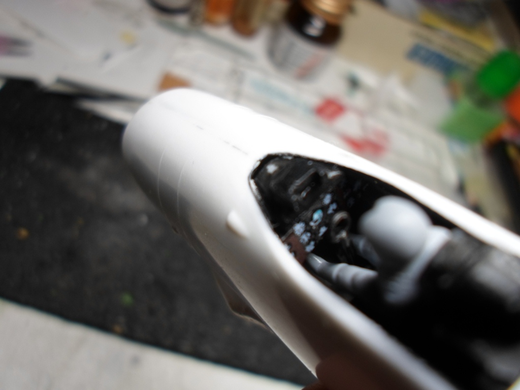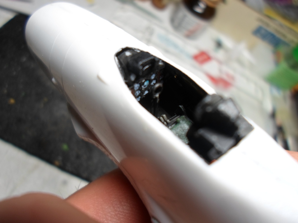 Сточил лишнее в обечайке капота фюзеляжа.Там должен быть проём между фюзеляжным капотом и капотом редуктора,его там и в помине не было.