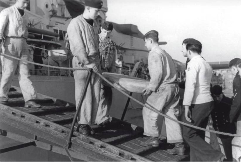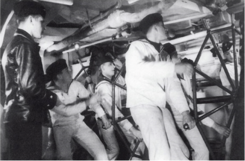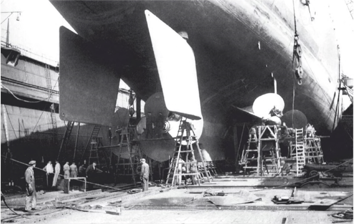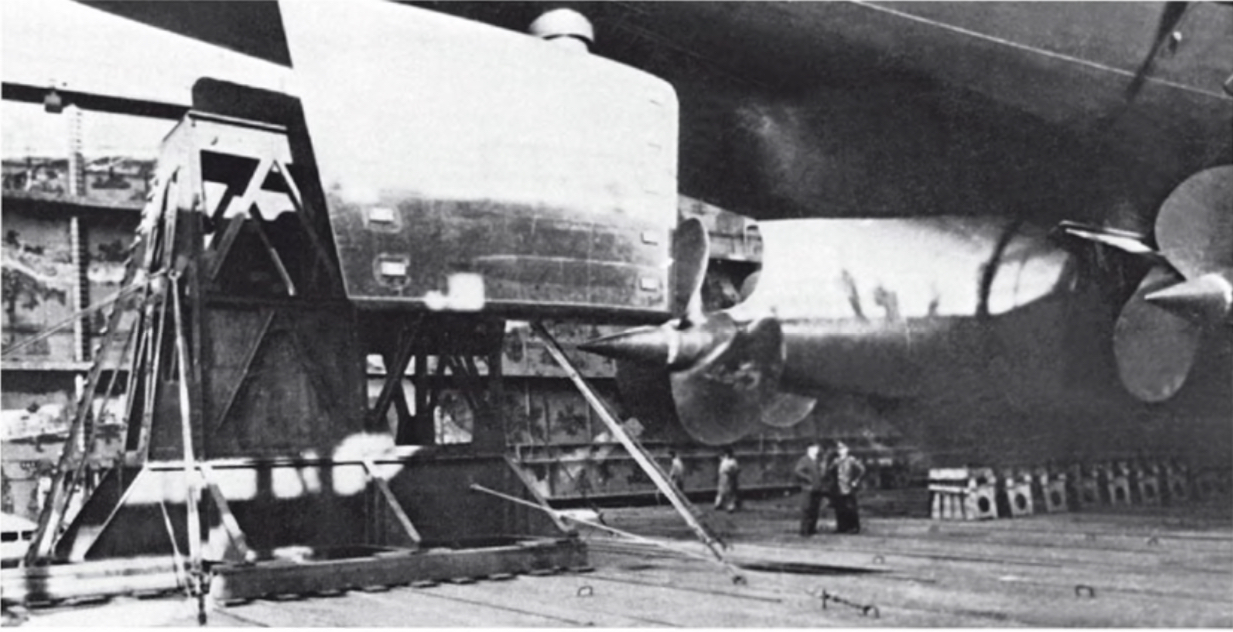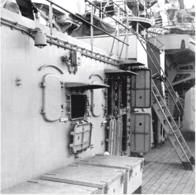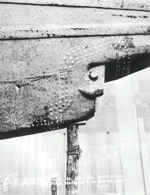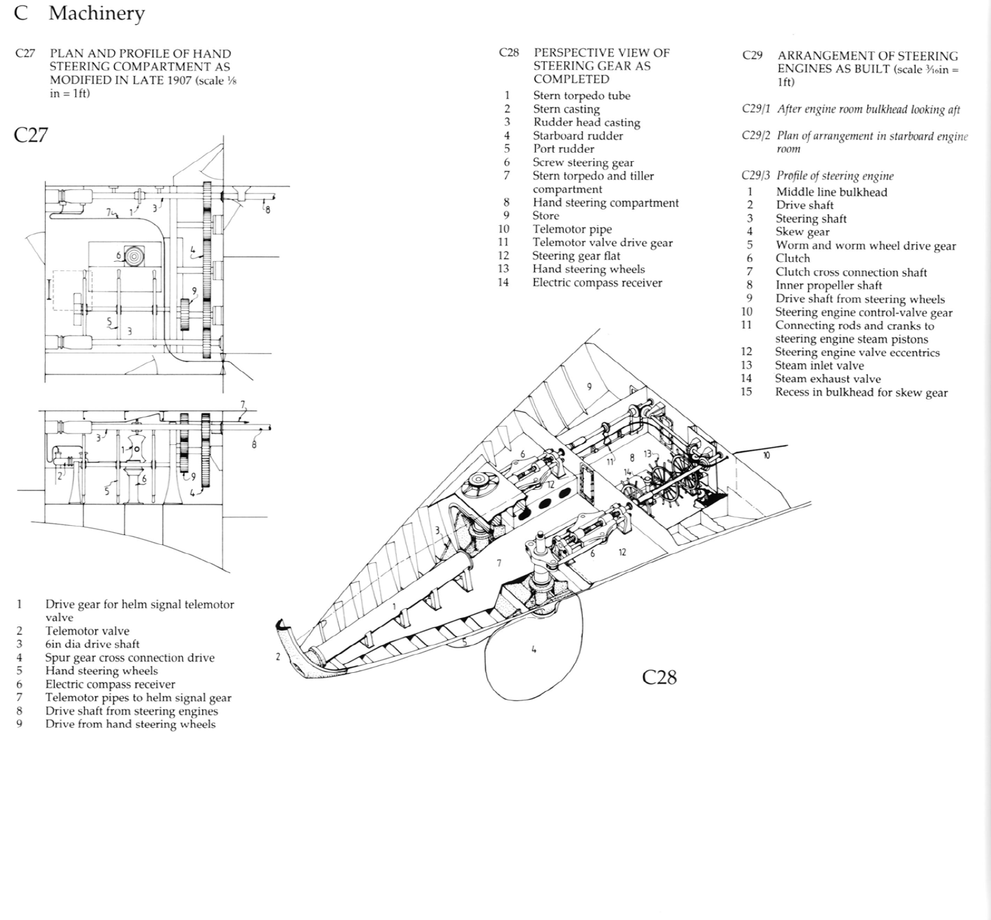 По хронологии показаны отсеки, куда от англичан прилетало в его последнем походе. Румпельное - механизацию и управление правым рулем вынесли. Одно фото с "Тирпица" где показан аврал по ручному управлению рулем.