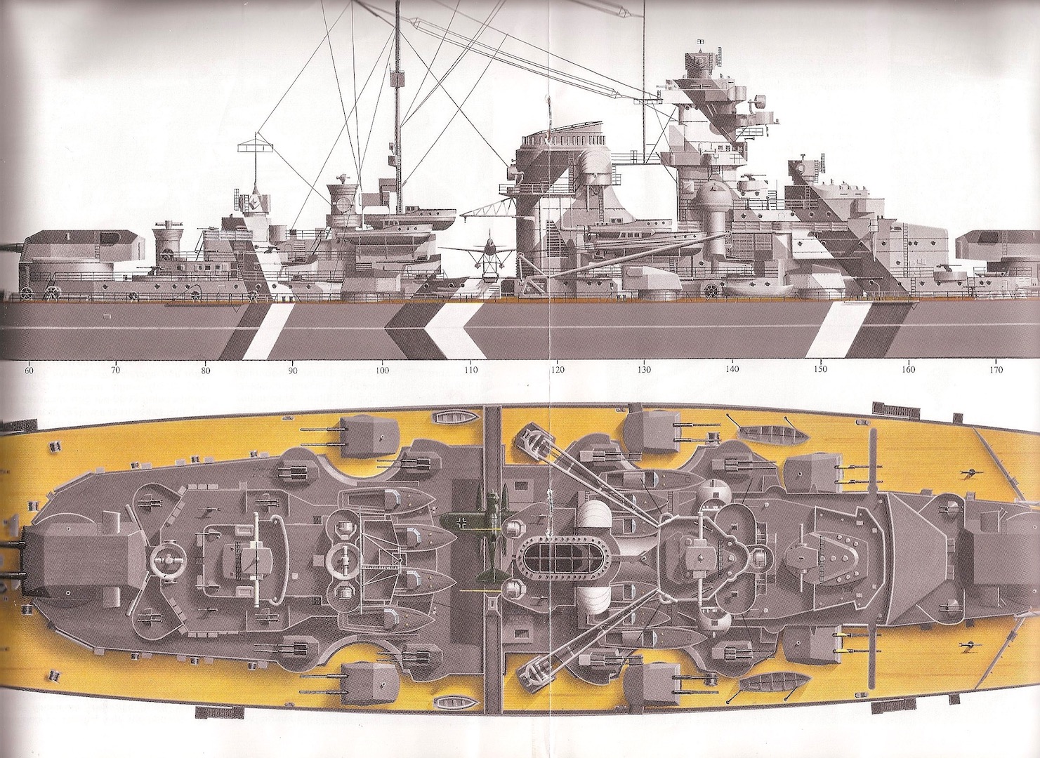 Упс! У вас на фото не Бисмарк, а Тирпиц. Кран смещен к баку. Это их основное отличиеСергей,это "Бисмарк" на фото.
