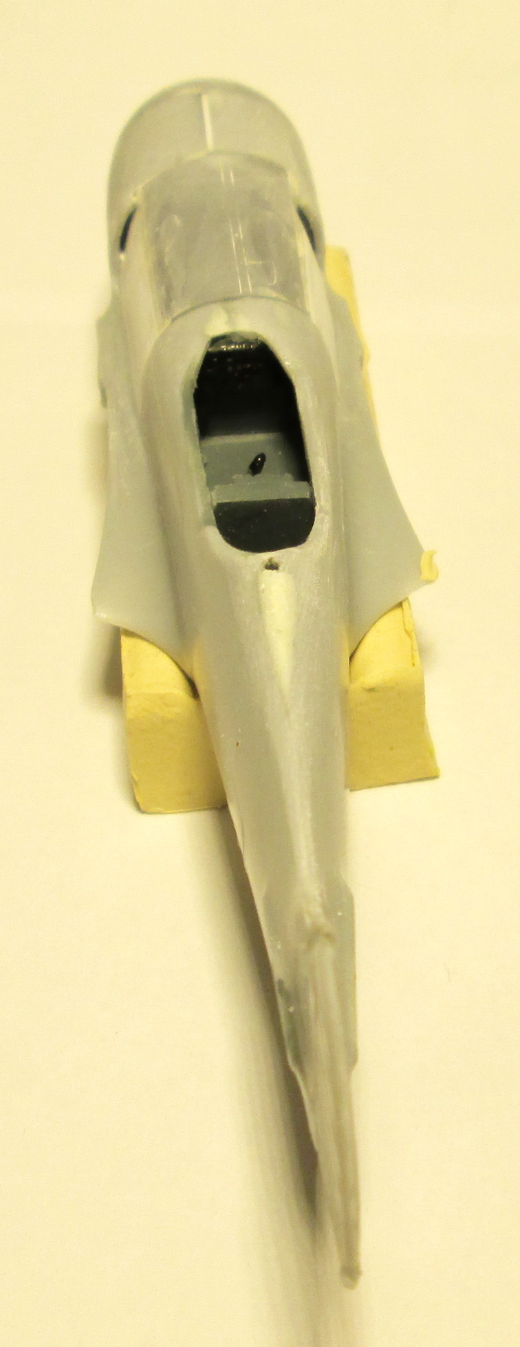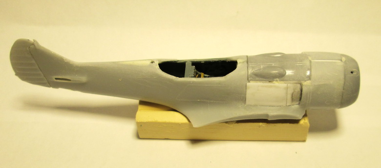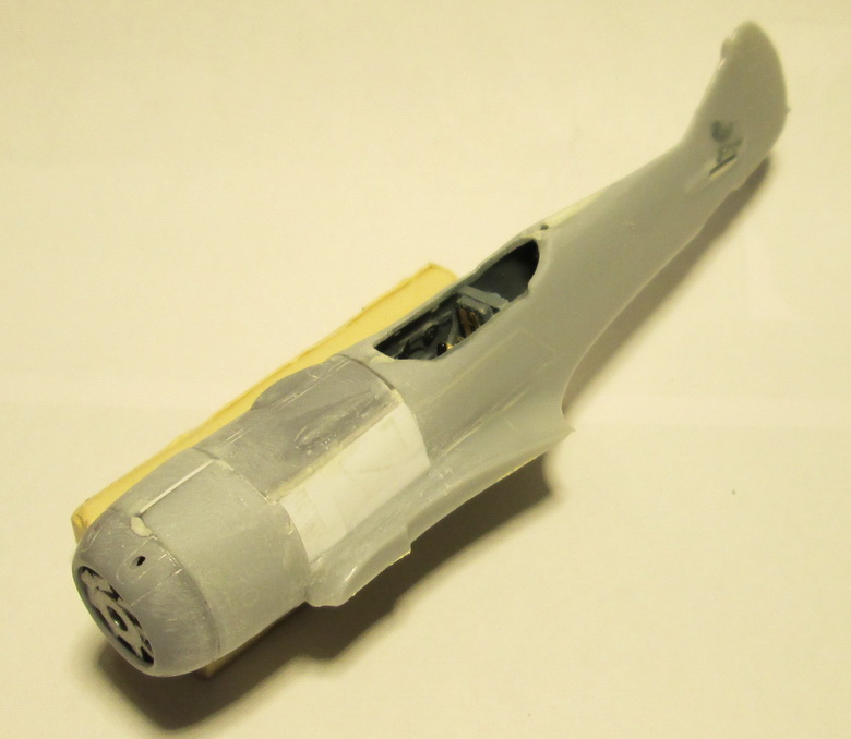 Итогом работы с моделью сегодня стала сборка "до кучи" всех частей фюзеляжа, подвергшихся переделке. Прошелся шпатлевкой, на скорую руку сошкурил, но это еще не конечный результат.
